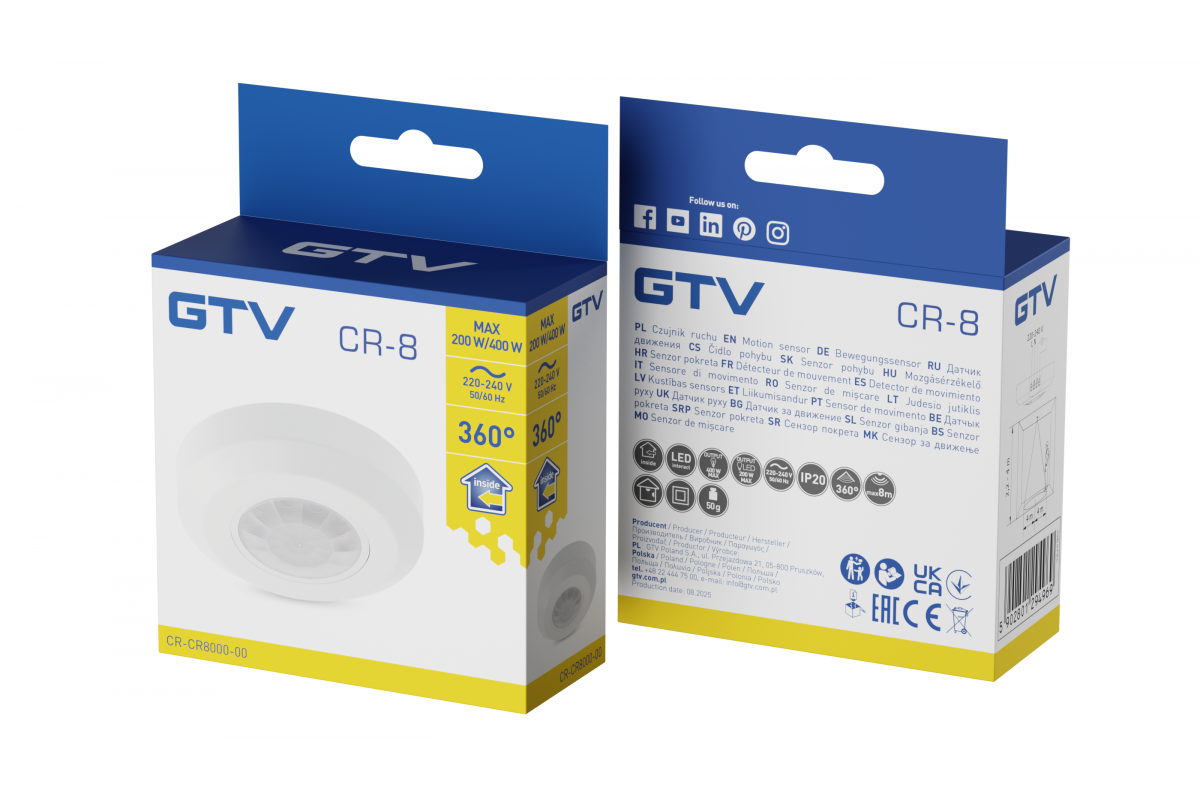 CR-8 to zaawansowany czujnik ruchu korzystający z technologii wykrywania energii podczerwonej emitowanej przez ciało ludzkie. Ta zasada działania zapewnia niezawodne działanie zarówno w ciągu dnia, jak i w nocy.