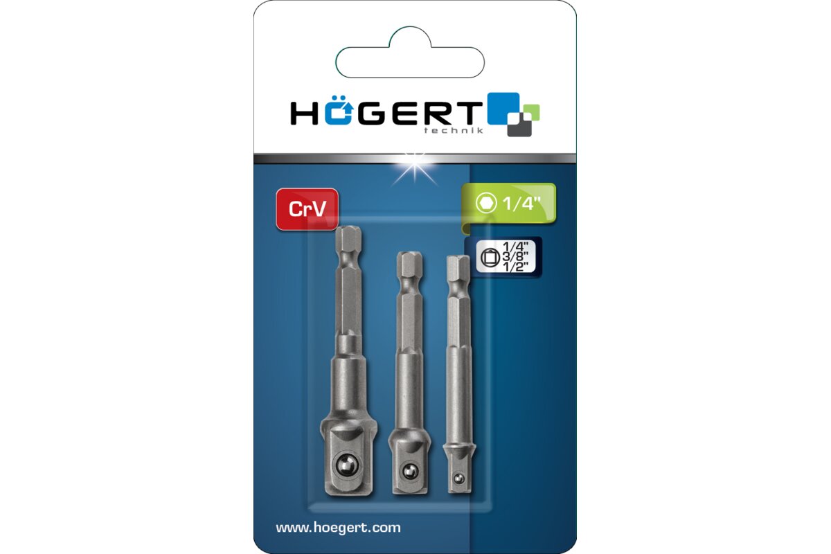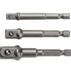 Komplet trzech uchwytów wiertarkowych do nasadek. Stosowany w wiertarko-wkrętarkach sieciowych i akumulatorowych.