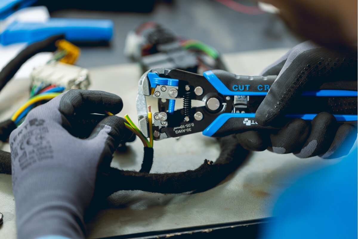 Szczypce automatyczne do ściągania izolacji z przewodów jedno- i wielożyłowych, wykorzystywane przy pracach instalacyjnych i montażowych.