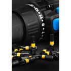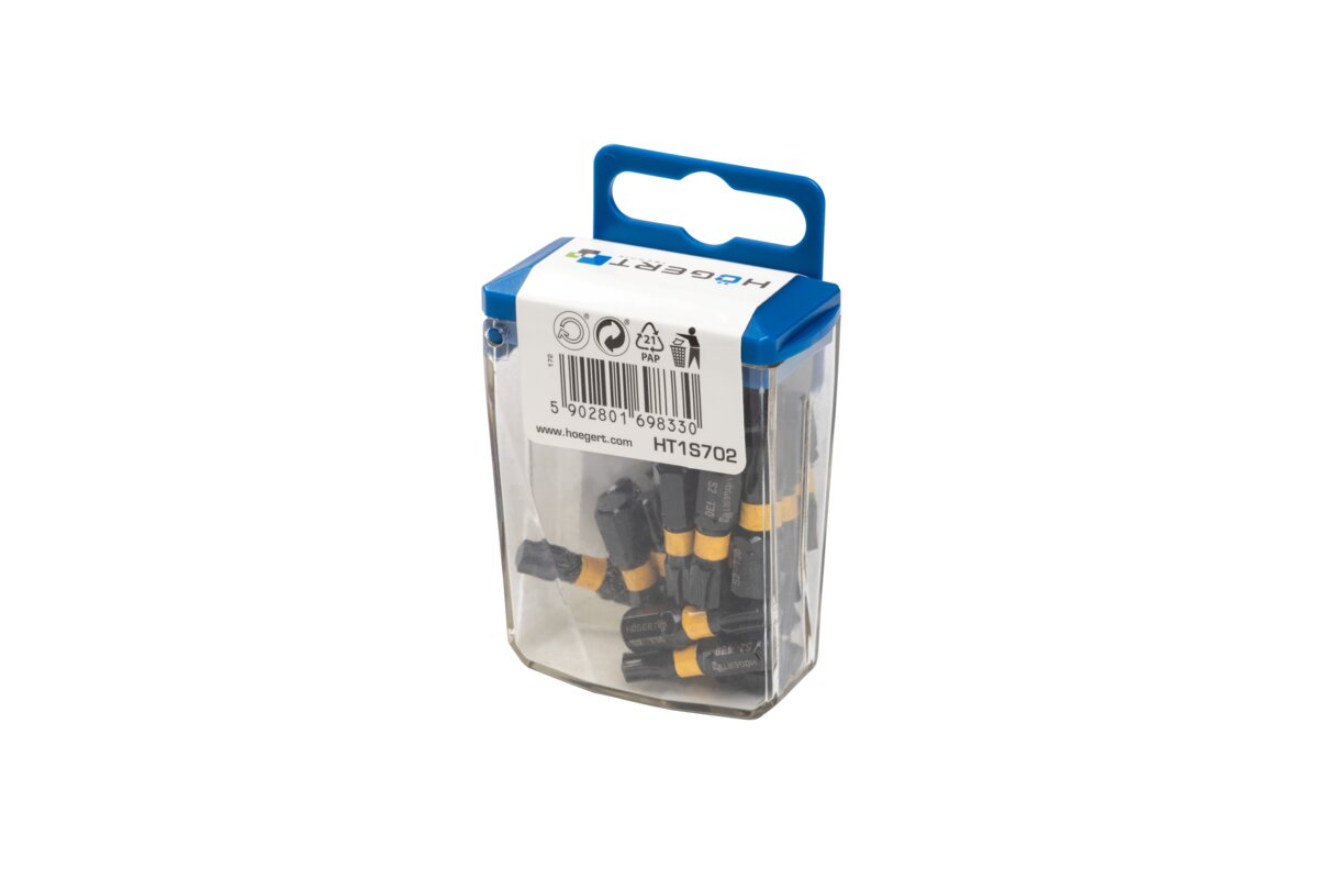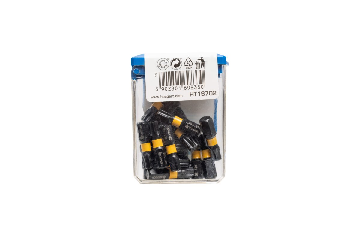 Końcówki wkrętakowe TX, gwiazdowe, typu Torx stosowane są do wkrętów z łbami o nacięciu w kształcie sześcioramiennej gwiazdki. Znacznie zwiększa to powierzchnię roboczą styku z wkrętem, co pozwala na dokręcanie łącznika z bardzo dużą siłą, bez uszkodzenia łba i krawędzi roboczych narzędzia. Końcówki przeznaczone są do pracy m.in. z zakrętarkami udarowymi lub adapterami z uchwytem 1/4". Aby sprostać pracy z dużymi obciążeniami zostały wykonane z wysokogatunkowej, hartowanej stali stopowej S2. Skład metalu, z którego bity zostały wykonane sprawia, że są one bardziej odporne na skręcanie przy przenoszeniu siły na wkręt. Tym samym mogą pracować z wyższymi momentami obrotowymi. Technologia obróbki cieplnej i mechanicznej części roboczej sprawia, że narzędzia są odpowiednio elastyczne pochłaniając udar. Twardość 58-61 HRC w skali Rockwella zapewnia wysoką odporność na zużycie, gwarantując długą żywotność, nawet przy intensywnym użytkowaniu. Grot bitu jest namagnesowany, co ułatwia trzymanie wkrętów podczas pracy.
