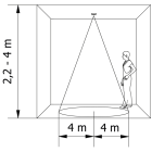 Maksymalny zasięg detekcji czujnika ma promień 4 metrów, co pozwala na efektywne monitorowanie przestrzeni.
