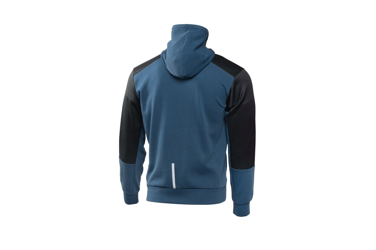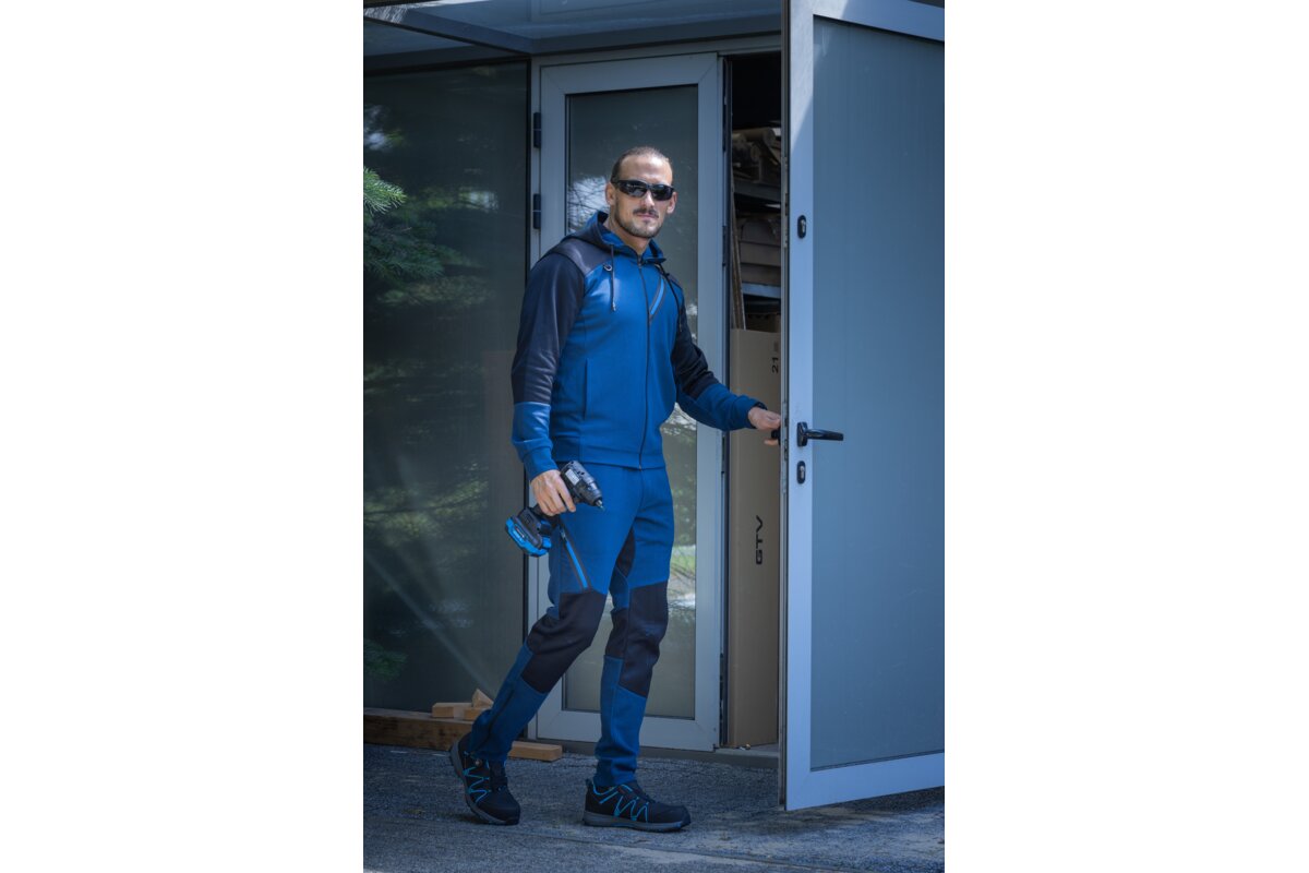 Bluza dresowa ERIK to wygodna i funkcjonalna odzież codzienna zaprojektowana z myślą o użytkownikach pracujących mobilnie lub w środowisku lekkiego przemysłu. Dzianina z dodatkiem elastanu zapewnia elastyczność i dopasowanie do sylwetki, a kaptur oraz kieszeń typu kangurek zwiększają praktyczność użytkowania. Nowoczesne zestawienie kolorów niebieskiego i czarnego nadaje bluzie dynamiczny, sportowy charakter, odpowiedni zarówno do pracy, jak i codziennego użytku na zewnątrz.