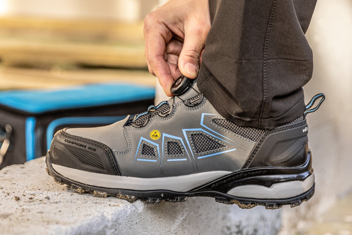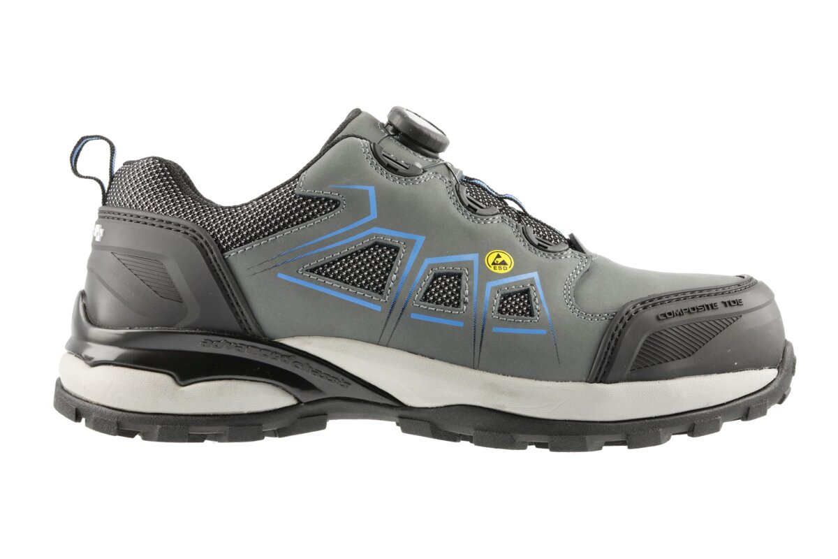 Męskie półbuty ochronne zgodne z klasą S3S według normy EN ISO 20345 posiadają oznaczenie ESD do użytku w strefach EPA (chronionych przed wyładowaniami elektrostatycznymi). Ochrona przed efektem elektrostatycznym zgodna z normą EN 61340-5-1 umożliwia bezpieczne odprowadzanie ładunków elektrostatycznych, co zapobiega uszkodzeniom wrażliwych komponentów. Wysokiej jakości wykonanie obuwia sprzyja wygodzie i komfortowi użytkowania. Model wyposażono w LACE SYSTEM. umożliwiający szybką i łatwą regulację wiązania oraz precyzyjne i równomierne dopasowanie buta. Kompozytowy podnosek chroni palce stopy przed spadającymi przedmiotami. Dzięki antypoślizgowej podeszwie obuwie doskonale sprawdzi się podczas chodzenia po nierównych i śliskich podłożach. Buty dedykowane są dla branży logistycznej, transportowej, w przemyśle samochodowym, w pracach remontowych. Świetnie sprawdzą się w zamkniętych pomieszczeniach (np. halach).