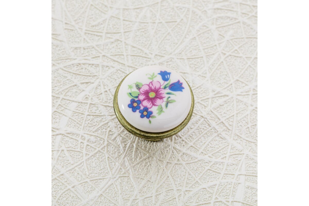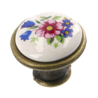 Gałka meblowa GTV 0728-J4, spring flower, porcelana, antyczny mosiądz