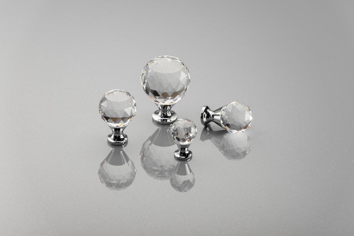 Kryształowa gałka to detal, który pięknie podkreśli luksusowe tkaniny jak atłas czy czarna skóra. Idealnie sprawdzi się we wnętrzach w stylu glamour oraz nowoczesnym. Będzie pasowała do mebli drewnianych oraz nowoczesnych oraz doda nutę elegancji i luksusu wewnętrzu. Gałkę wyróżnia wysokiej jakości wykonanie ze szkła, które w połączeniu ze znalową podstawą gwarantuje wysoki połysk i w pełni zasługuje na miano produktu premium. Kolekcja dostępna w czterech rozmiarach i kilku opcjach kolorystycznych.