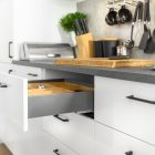 • gałka jest idealna do gładkich frontów, w stonowanych kolorach w meblach kuchennych, a także w meblach do salonu, sypialni, łazienki i korytarza;