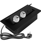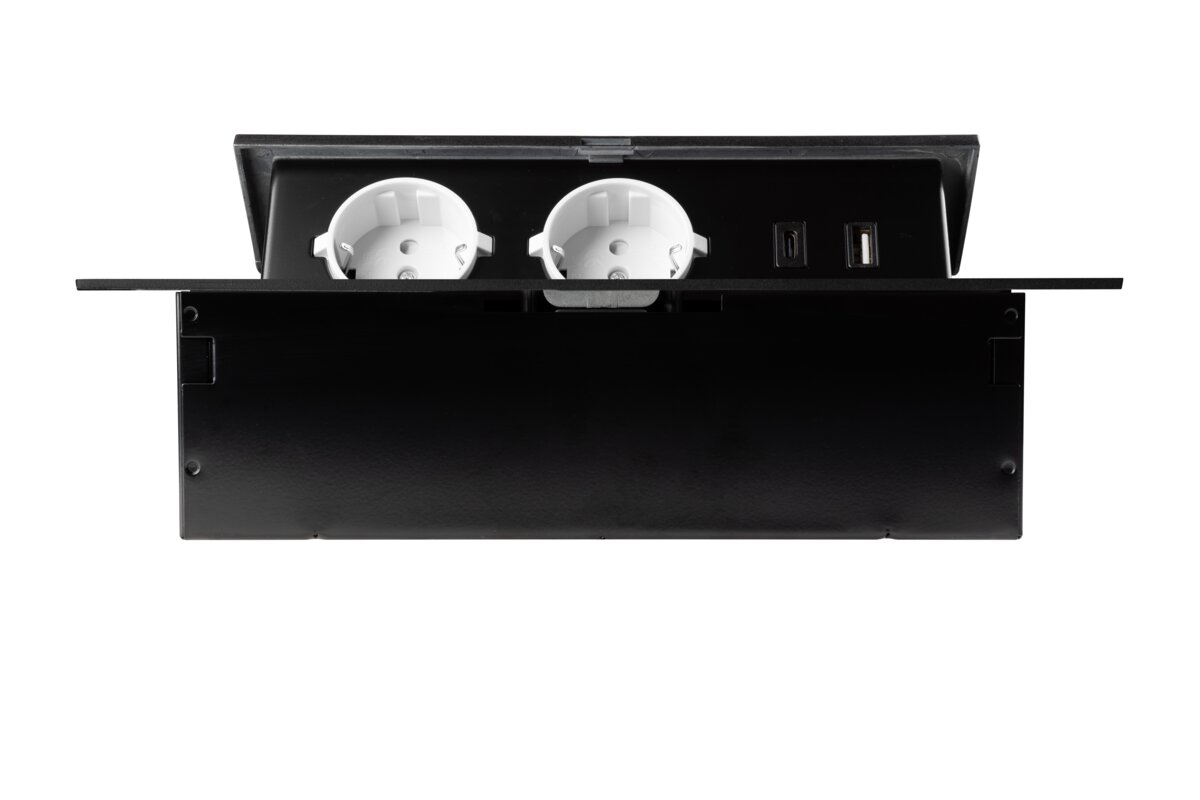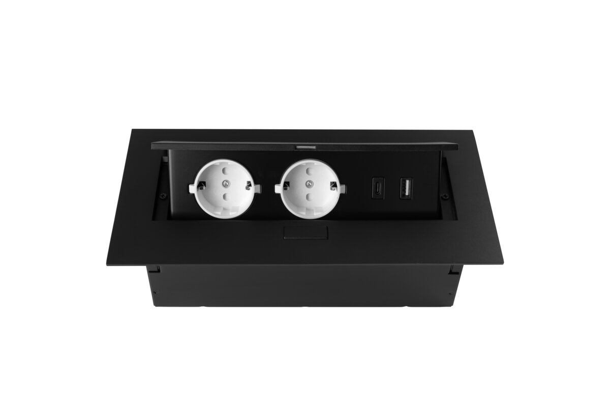 Kompaktowa konstrukcja idealnie sprawdzi się w przypadku braku miejsca na standardowy rozgałęziacz. Wszechstronne zastosowanie pozwala na instalację w każdej przestrzeni gdzie nie będzie narażony na bezpośrednie działanie wilgoci. Przedłużacz chowany w blacie pozwala zachować ład i porządek. Do dyspozycji są 2 gniazda prądowe i USBA A + C, które po skończonej pracy można schować w blacie. Produkt dostarczany jest z przewodem zasilającym o długości 1,5.