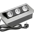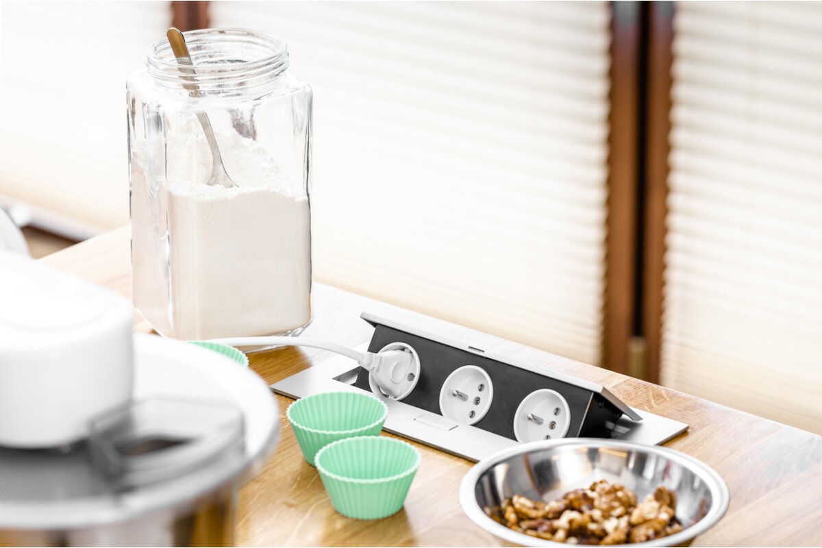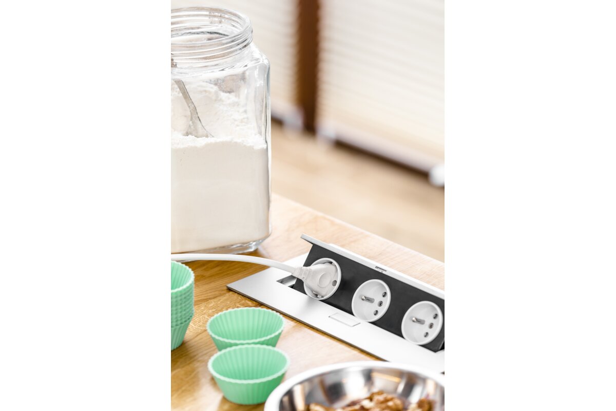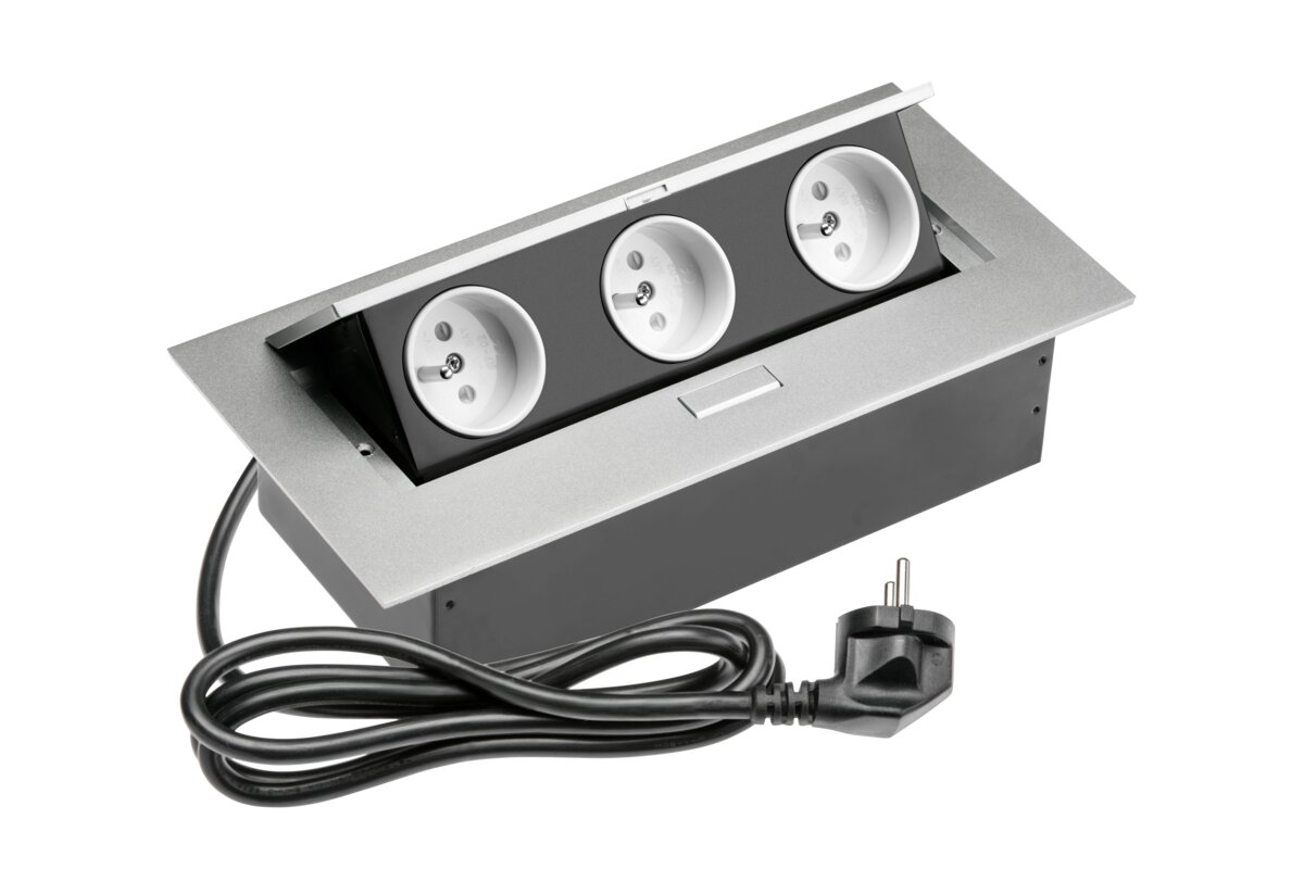 Klasyczne, prostokątne gniazdo wpuszczane w blat będzie świetnym rozwiązaniem dla minimalistów i osób ceniących prostotę. Subtelnie licuje z powierzchnią każdego biurka lub stołu. Po skończonej pracy możesz go po prostu schować w blacie.