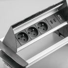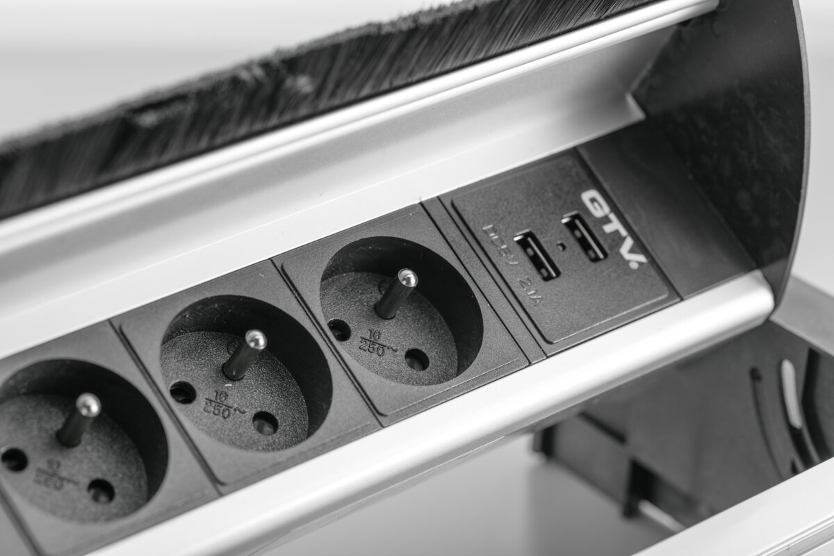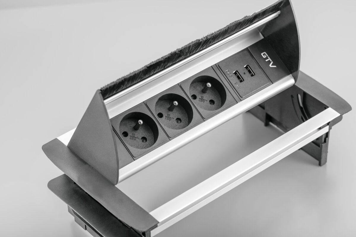 To najczęściej spotykany typ gniazd w biurach. Dzięki elastycznej szczotce może zostać zamknięte bez odłączania urządzeń, które zasila. To pozwala na komfortową pracę oraz postawienie na nim np. rzutnika, komputera. Zamknięte gniazdo wpływa na zachowanie ładu przestrzennego. Posiada gniazdka prądowe i gniazdka USB do ładowania urządzeń mobilnych.
