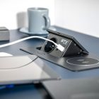 Eleganckie gniazdo Avaro Plus stanowi rozszerzoną wersję gniazda Avaro. Jest dodatkowo wyposażone w ładowarkę indukcyjną, co eliminuje konieczność wpinania tradycyjnej ładowarki do telefonu. Avaro jest zatem świetny do długiej pracy przy biurku, szczególnie kiedy często korzystamy z telefonu. To rozwiązanie docenią szczególnie osoby pracujące w trybie home office. Avaro Plus z powodzeniem znajdzie też swoje miejsce w hotelach, sklepach i na uczelniach. Wykończenie w czerni, bieli i aluminium sprawia, że z łatwością dobierzemy kolor gniazda, który będzie pasował do naszego biurka