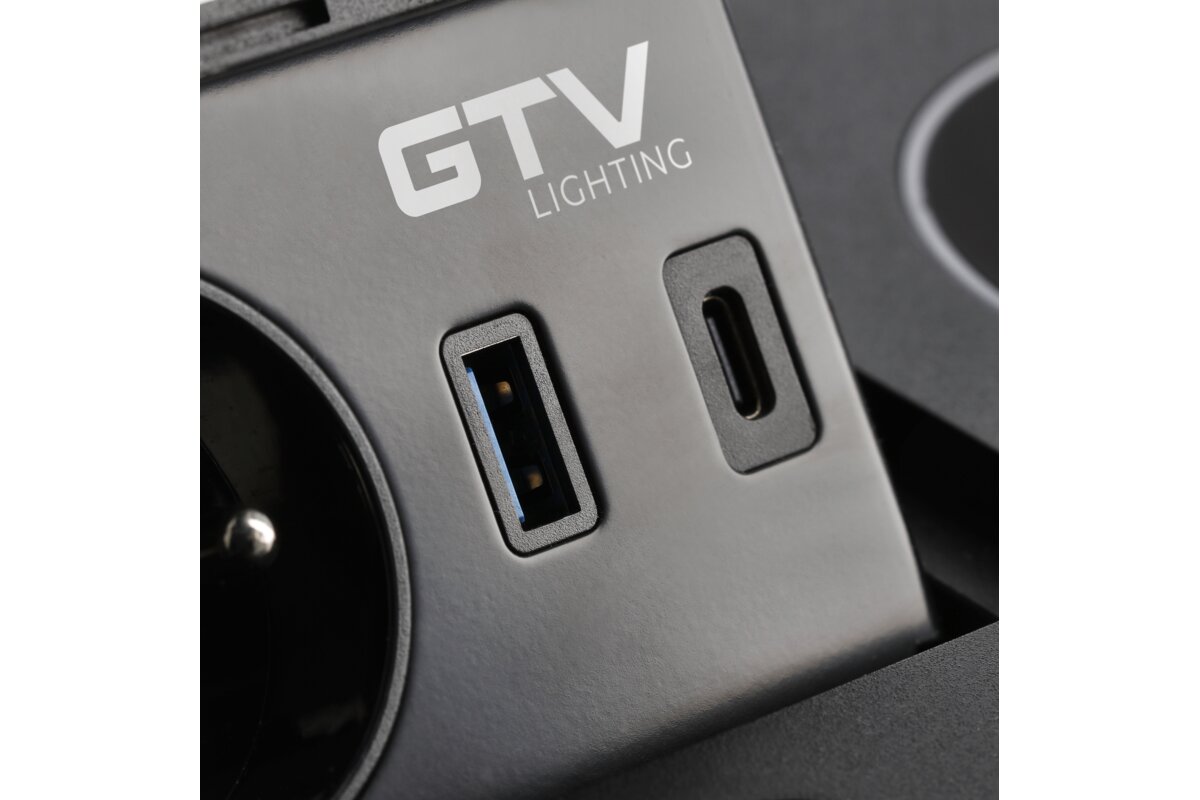 Gniazdo meblowe AVARO PLUS,1x gn french,USB A+C,ładowarka induk 5W,przewód 1.5m,czarny