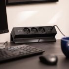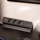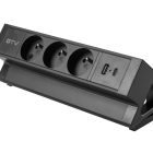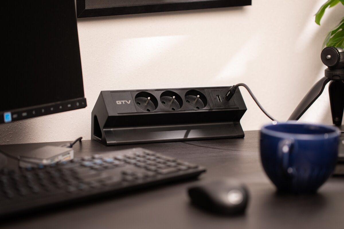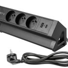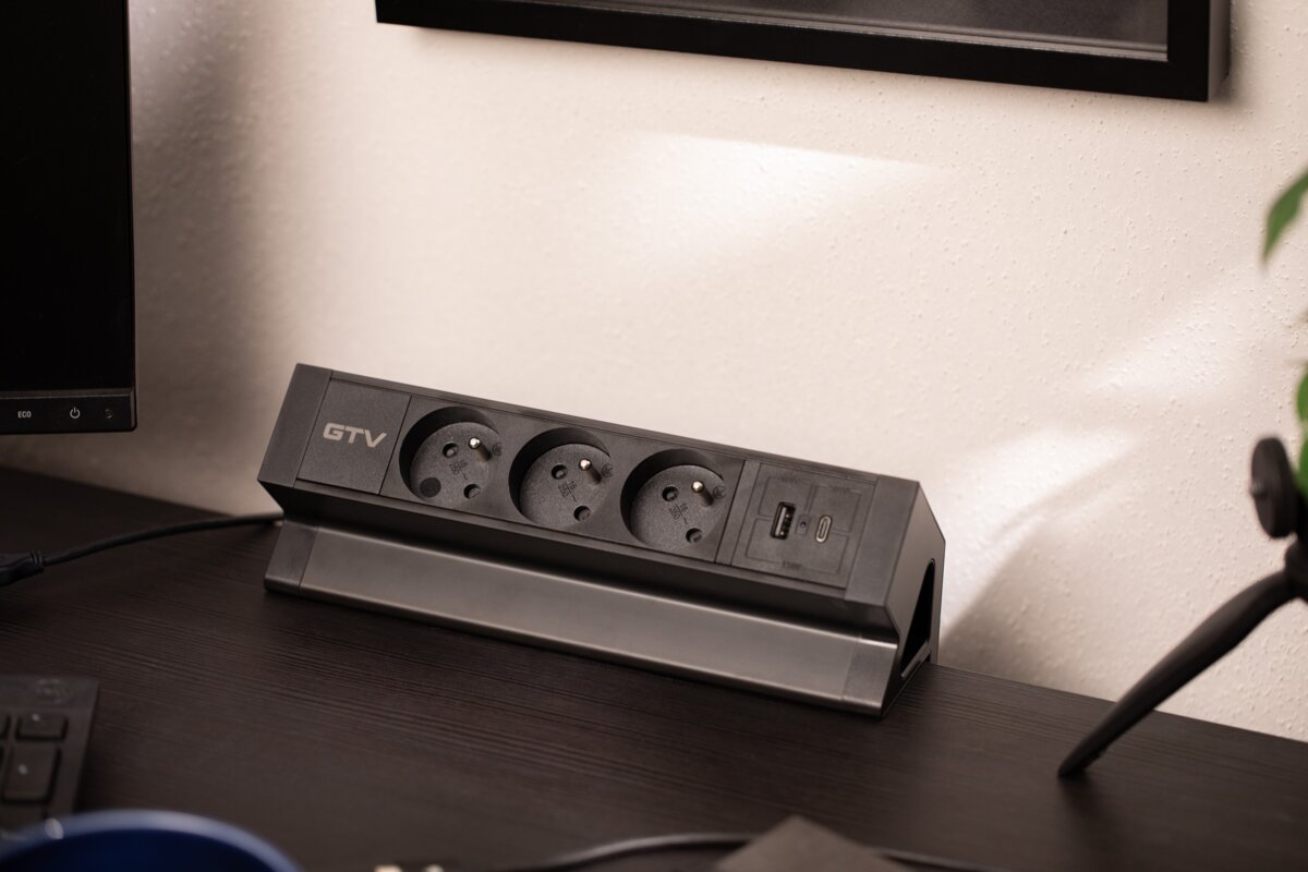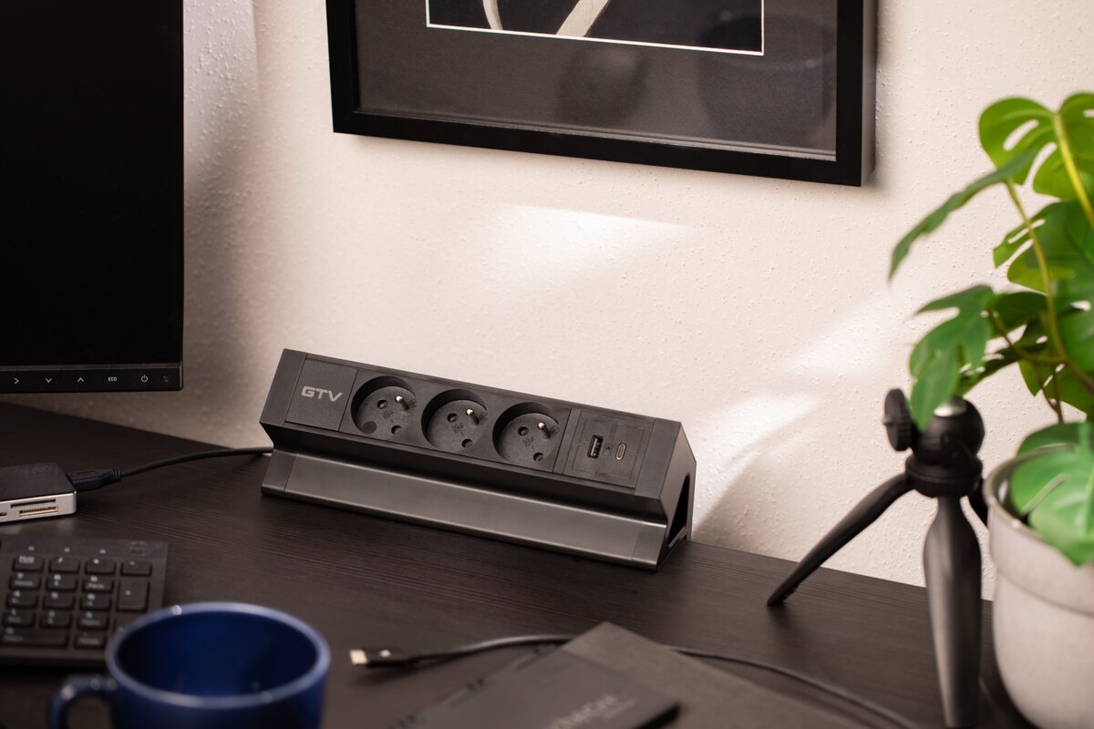 Gniazdo meblowe BASCO to praktyczne rozwiązanie do stołów i biurek w domu i w pracy. Ułatwia korzystanie z przestrzeni, a jego uniwersalny design pasuje do wielu aranżacji. Gniazdo montowane jest do krawędzi blatu o grubości od 5 do 50 mm – bez potrzeby wiercenia. Wyposażone w trzy gniazda typu french (z uziemieniem) oraz porty USB A i C, umożliwia jednoczesne podłączenie różnych urządzeń. Posiada przewód o długości 1,5 m i dostępne jest w czarnym klasycznym kolorze, co sprawia, że dyskretnie komponuje się z większością przestrzeni roboczych.
