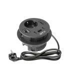 Gniazdo meblowe Rondo, 1xgniazdo schuko,1xUSB A+2xUSB C,1xRJ45,1xHDMI 1,4,kabel 1,5m,czarne