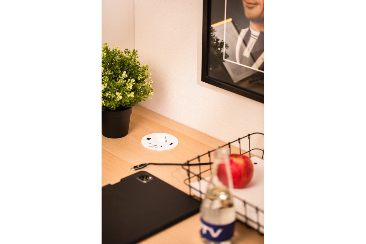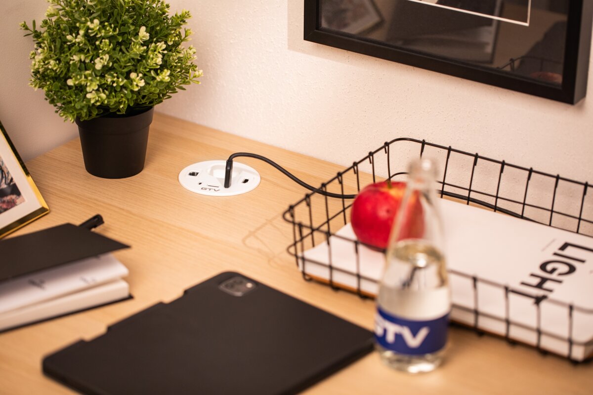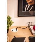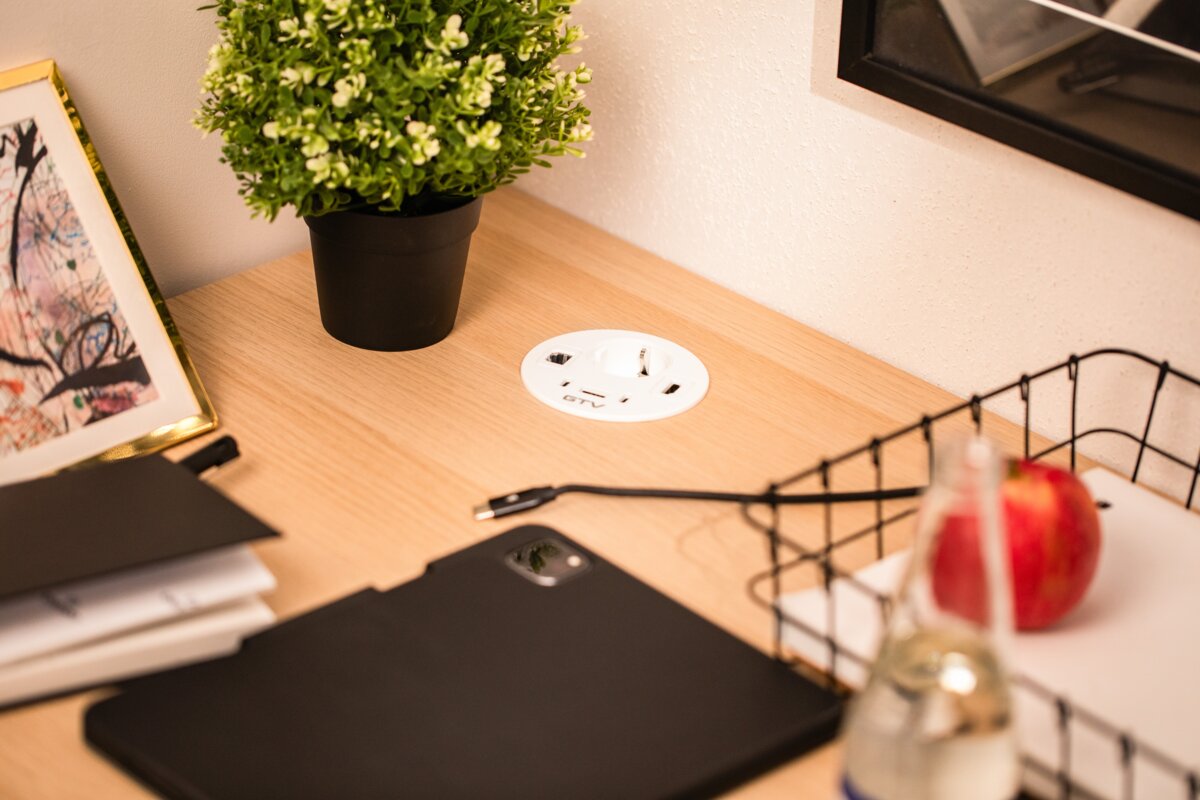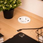 RONDO to okrągłe gniazdo meblowe, które łączy elegancki design z maksymalną funkcjonalnością. Dzięki różnorodnym portom – Schuko, USB-A oraz dwóm USB-C – pozwala na szybkie i wygodne ładowanie wielu urządzeń jednocześnie. Dodatkowo wyposażono je w złącza RJ45 i HDMI, co czyni je idealnym rozwiązaniem do nowoczesnych biur, sal konferencyjnych i domowych stanowisk pracy. Dostępne w eleganckiej bieli – doskonale wkomponuje się w każdy wystrój wnętrza. Przewód o długości 1,5 m zapewnia swobodę montażu i komfort użytkowania.