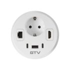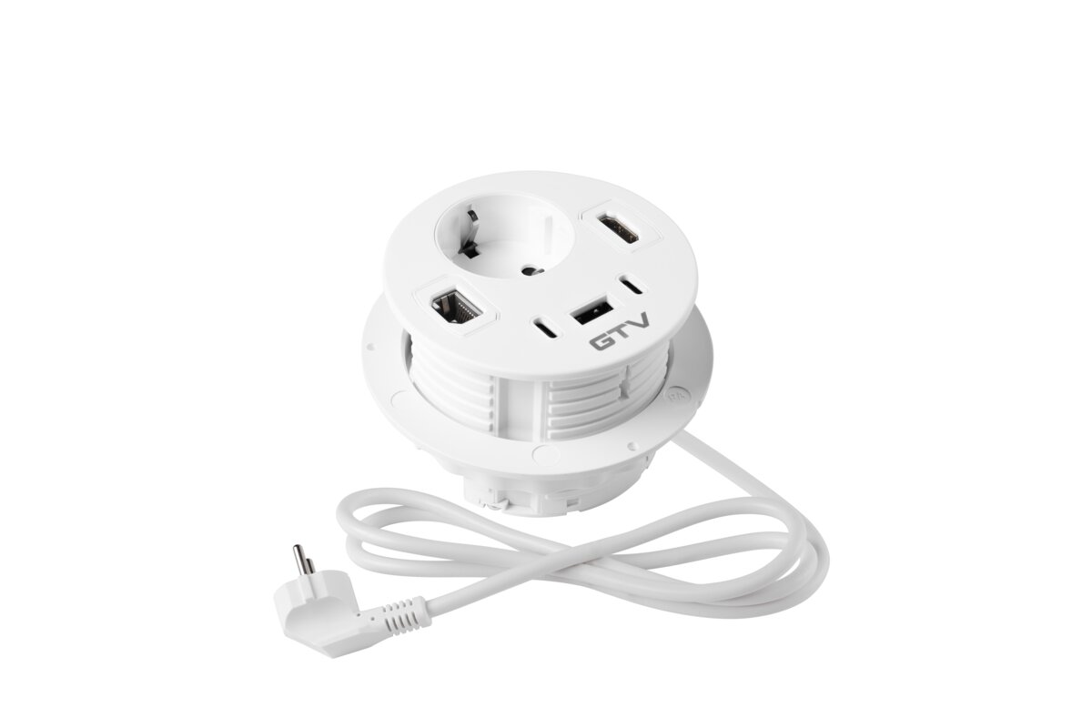 Gniazdo meblowe Rondo,1xgniazdo schuko,1xUSB A+2xUSB C,RJ45,1xHDMI 1,4,kabel 1,5m,białe