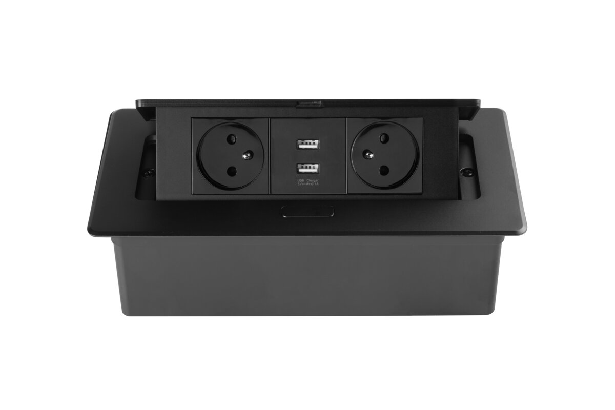 Gniazdo meblowe SOFT 2x gniazdo z uziem, USB 2,1A, kabel zasilający z wtyczką,czarny,NOWY PANEL
