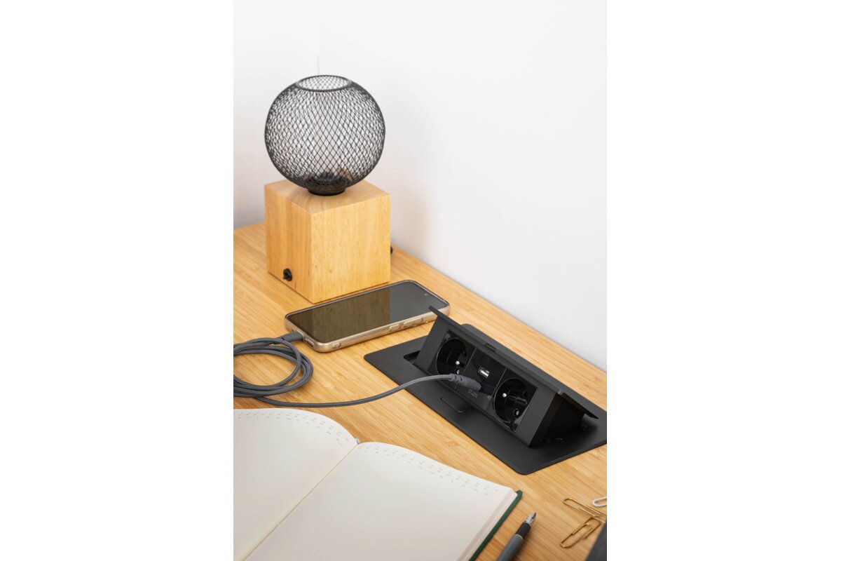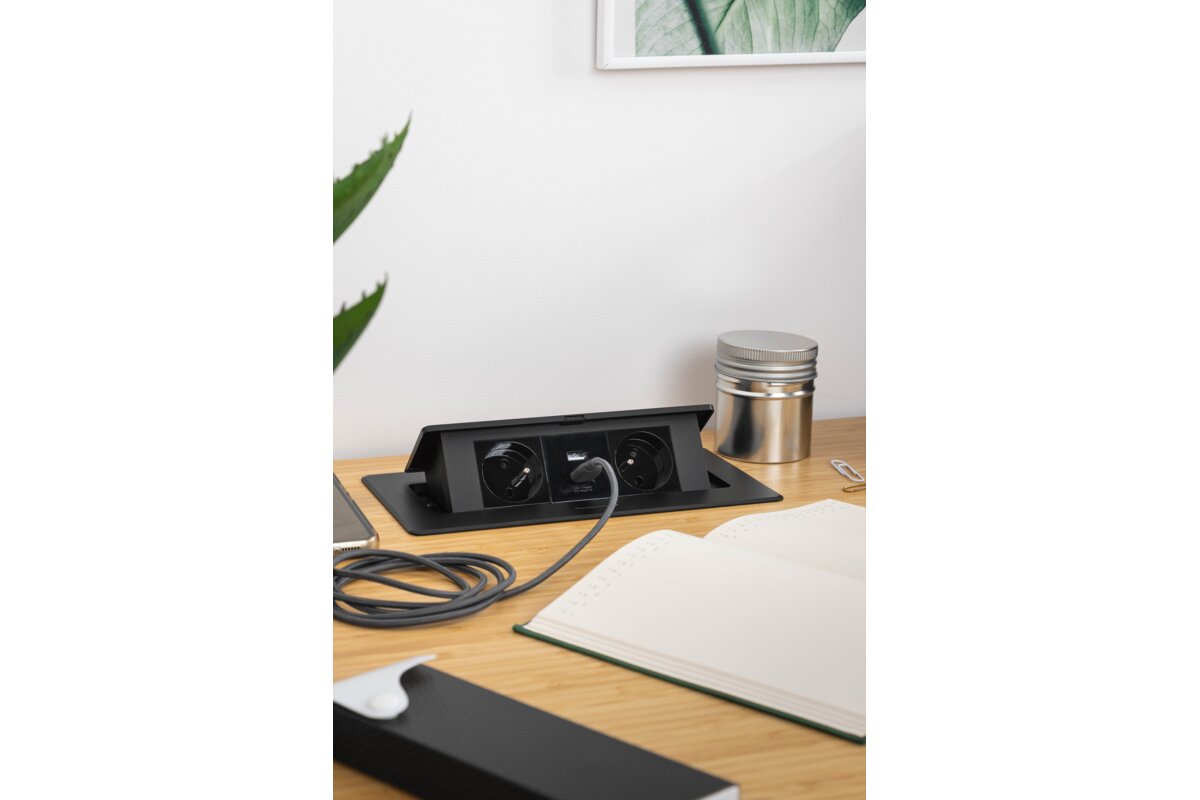 Kompaktowa konstrukcja idealnie sprawdzi się w przypadku braku miejsca na standardowy rozgałęziacz. Wszechstronne zastosowanie pozwala na instalację np. w blacie biurka, blacie kuchennym czy stole warsztatowym. Przedłużacz pozwala zachować ład i porządek w każdym biurze, kuchni, a nawet w warsztacie. Satynowe wykończenie nadaje mu elegancji i jest przyjemne w dotyku. Sama instalacja w blacie jest banalnie prosta. Produkt dostarczany jest wraz z przewodem zasilającym o długości 1,5 metra.