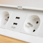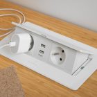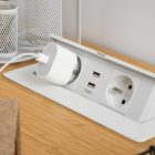 Kompaktowa konstrukcja idealnie sprawdzi się w przypadku braku miejsca na standardowy rozgałęziacz. Wszechstronne zastosowanie pozwala na instalację np. w blacie biurka, blacie kuchennym czy stole warsztatowym. Przedłużacz pozwala zachować ład i porządek w każdym biurze, kuchni, a nawet w warsztacie. Satynowe wykończenie nadaje mu elegancji i jest przyjemne w dotyku. Sama instalacja w blacie jest banalnie prosta. Produkt dostarczany jest wraz z przewodem zasilającym o długości 1,5 metra.