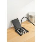 Gniazdo meblowe wpuszczane z przesłoną Flip to rozwiązanie do mieszkań, biur, lokali czy urzędów. Sprawdza się tam, gdzie konieczna jest wygodna organizacja kabli. Wyposażone w kombinację różnych gniazd urządzenie, pozwala bez trudu podłączyć elektronikę różnego typu bez potrzeby używania przedłużaczy. Może być instalowane w blacie lub bocznej ścianie mebla, a jego montaż jest bezproblemowy i nie wymaga wiercenia, ani frezowania otworów. Estetyczne wykonanie i dopracowane detale świetnie się prezentują. Gniazdo posiada dyskretną przesłonę, dzięki której bez wpiętych przewodów jest niezwykle minimalistyczne. Dostępne jest w dwóch uniwersalnych kolorach, które doskonale spajają się z aranżacją wnętrza.