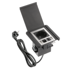 Gniazdo meblowe wpuszczane z przesłoną Flip to rozwiązanie do mieszkań, biur, lokali czy urzędów. Sprawdza się tam, gdzie konieczna jest wygodna organizacja kabli. Wyposażone w kombinację różnych gniazd urządzenie, pozwala bez trudu podłączyć elektronikę różnego typu bez potrzeby używania przedłużaczy. Może być instalowane w blacie lub bocznej ścianie mebla, a jego montaż jest bezproblemowy i nie wymaga wiercenia, ani frezowania otworów. Estetyczne wykonanie i dopracowane detale świetnie się prezentują. Gniazdo posiada dyskretną przesłonę, dzięki której bez wpiętych przewodów jest niezwykle minimalistyczne. Dostępne jest w dwóch uniwersalnych kolorach, które doskonale spajają się z aranżacją wnętrza.