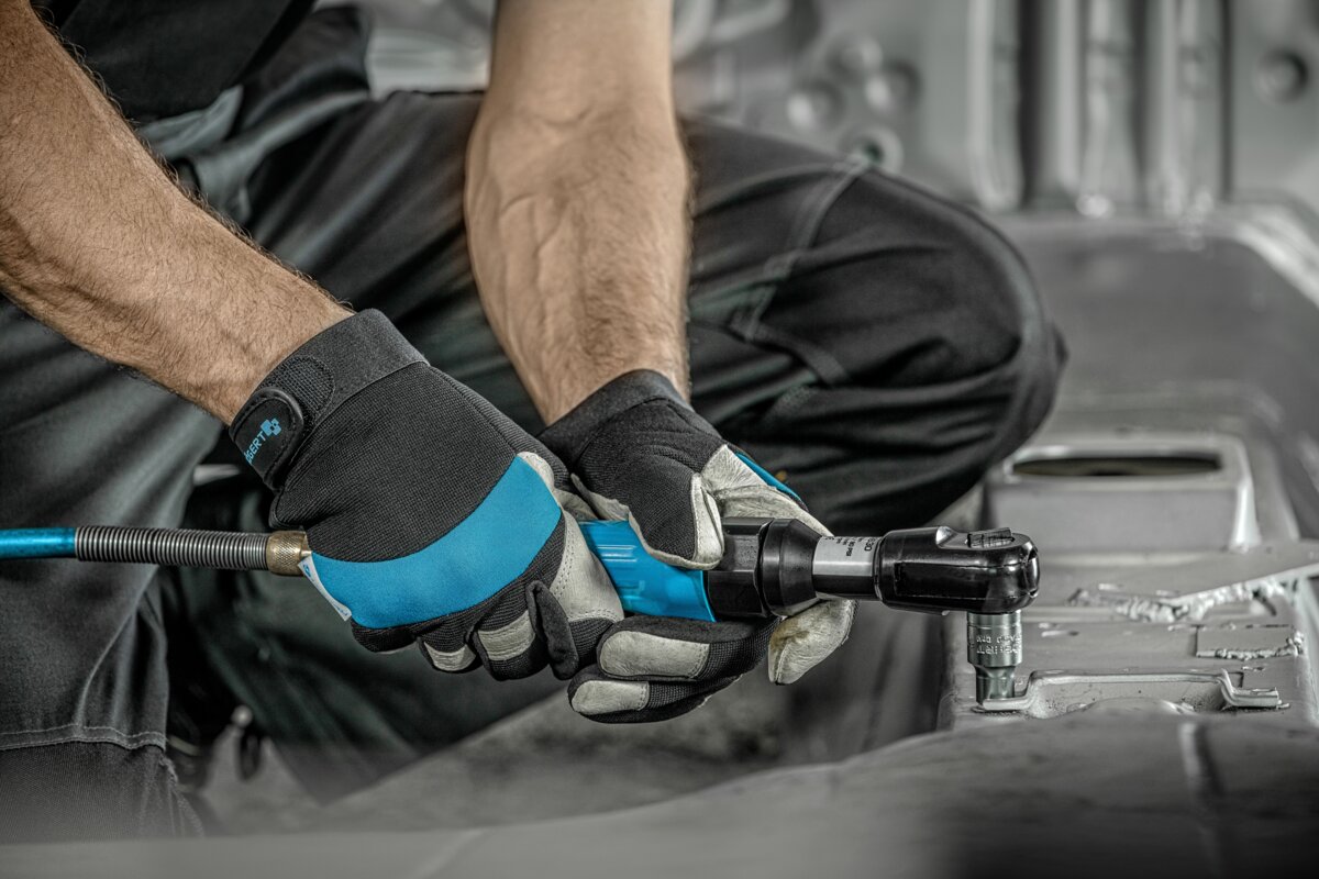 Grzechotka pneumatyczna zasilana strumieniem sprężonego powietrza pod ciśnieniem. Przeznaczona do prac pod dużym obciążeniem w zakładach wulkanizacyjnych i motoryzacyjnych. Zastępuje grzechotki o napędzie ręcznym, skracając czas wykonania czynności serwisowych i ułatwiając pracę w trudno dostępnych miejscach.