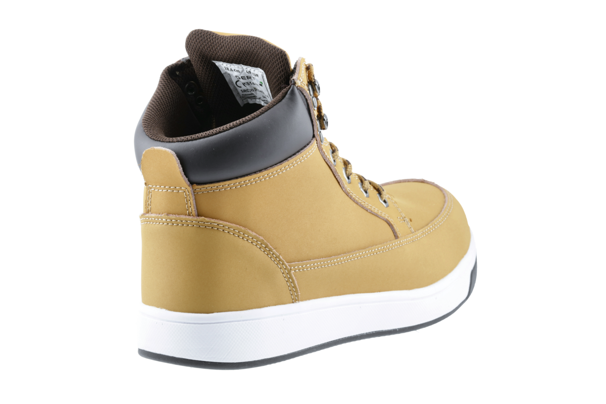 Męskie trzewiki ochronne HAVEL sięgające do kostki. Przeznaczone do ochrony stóp przed czynnikami zewnętrznymi. Zgodne z klasą bezpieczeństwa SB według normy ISO 20345:2011. Wykonane z wysokiej jakości skóry nubuk, idealnie łączą modny, stylowy wzór butów sportowych wraz z zaletami obuwia ochronnego. Buty wyposażono w stalowy podnosek, który chroni palce stopy m.in. przed spadającymi przedmiotami, gruzem, narzędziami. Dzięki antypoślizgowej podeszwie trzewiki doskonale sprawdzą się podczas chodzenia po nierównych i śliskich podłożach. Buty polecane w branży logistycznej, transportowej, w przemyśle samochodowym, w pracach remontowych oraz budowlanych.