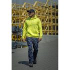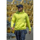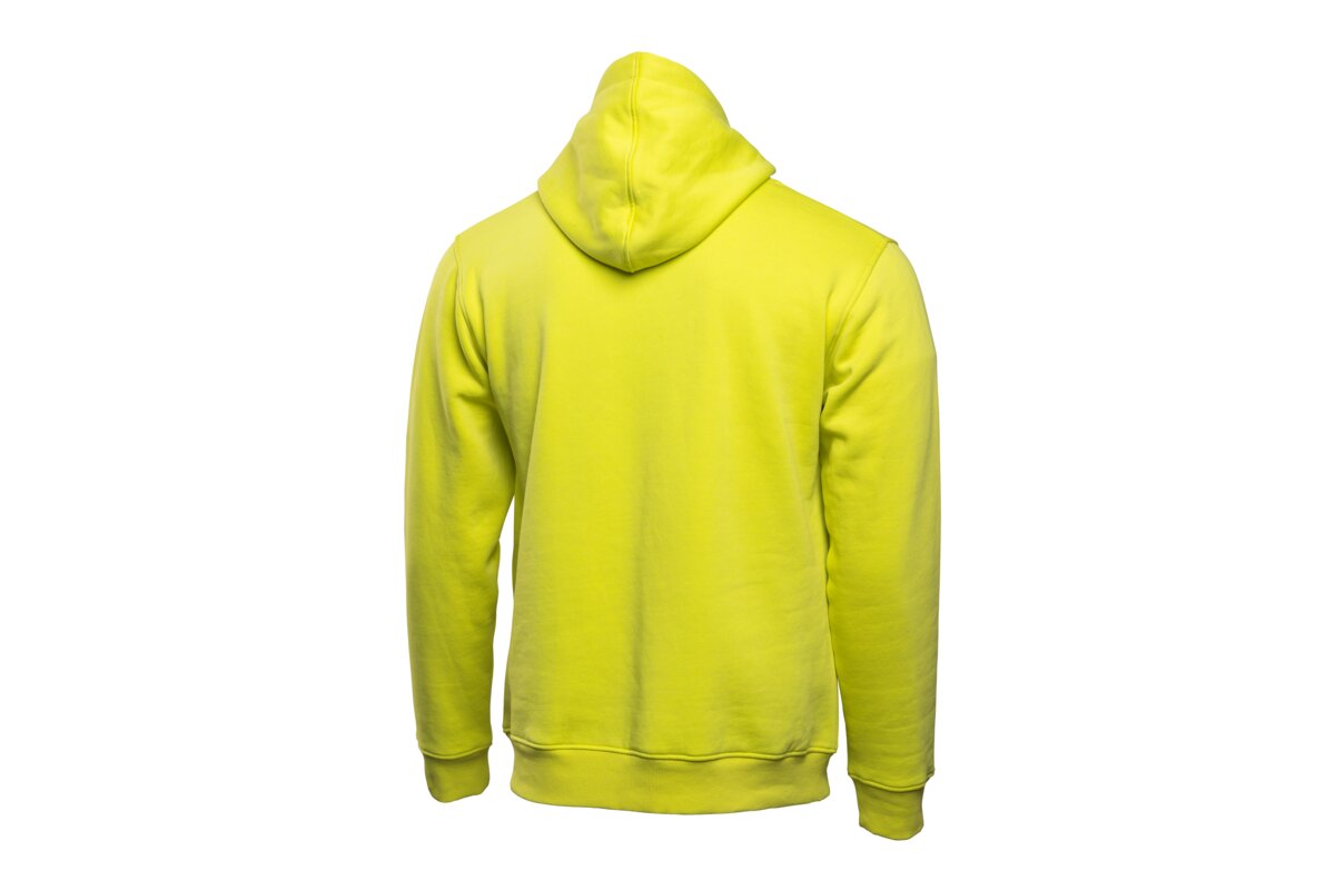Bluza dresowa z kapturem w intensywnym, cytrynowym kolorze zaprojektowana została z myślą o użytkownikach ceniących wygodę oraz nowoczesne wzornictwo. Charakterystycznym elementem jest tłoczone logo na froncie, które nadaje całości wyrazistego charakteru. Dzięki odpowiedniej gramaturze i mieszance poliestru z bawełną, bluza sprawdzi się zarówno w pracy, jak i podczas aktywności outdoorowych.