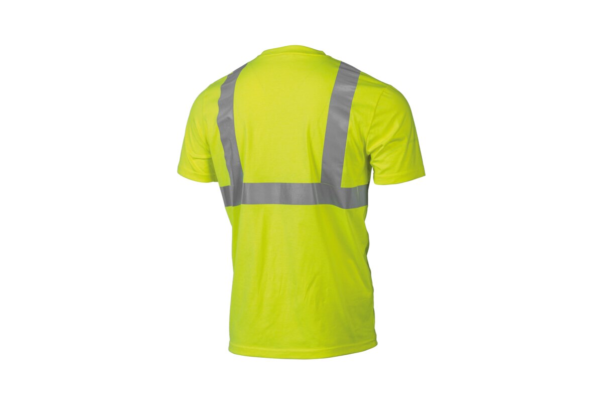 T-shirt ostrzegawczy JURAL został wykonany z wysokiej jakości bawełny oraz poliestru. Odpowiedni dobór dzianiny sprawia, że T-shirt jest przewiewny i miły w dotyku. Luźny krój nie opina sylwetki i zapewnia pełną swobodę ruchów. T-shirt ma krótki rękaw, a dekolt jest okrągły (w kształcie litery ”U”). Koszulka posiada 2 taśmy odblaskowe dookoła korpusu i 2 taśmy odblaskowe na ramionach, które zapewniają widoczność w niesprzyjających warunkach. Taśmy zostały nadrukowane metodą termo transferową, co zapewnia ich trwałość i zwiększoną odporność na uszkodzenia mechaniczne. Żółta odzież ochronna ma szerokie zastosowanie w transporcie drogowym, przemyśle i usługach.