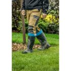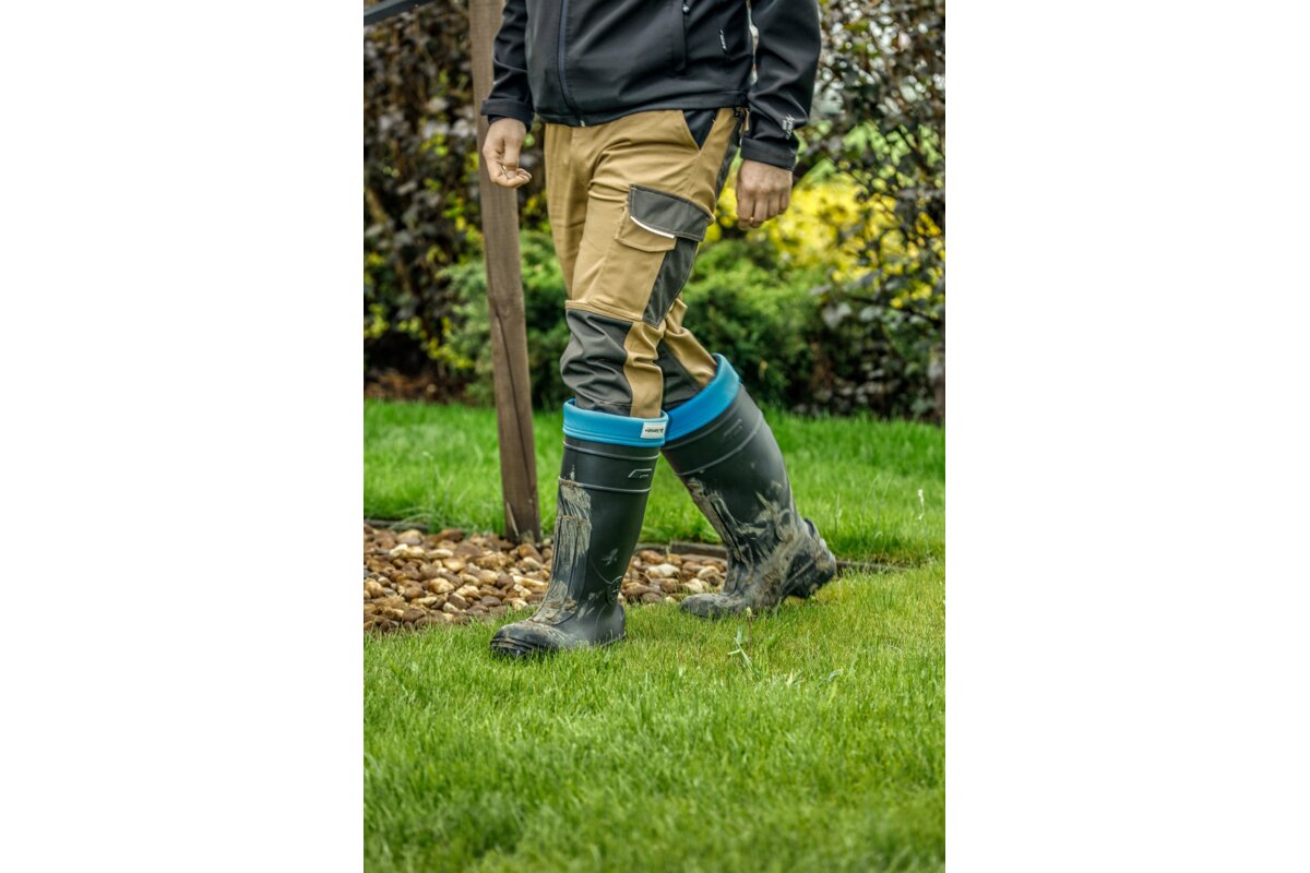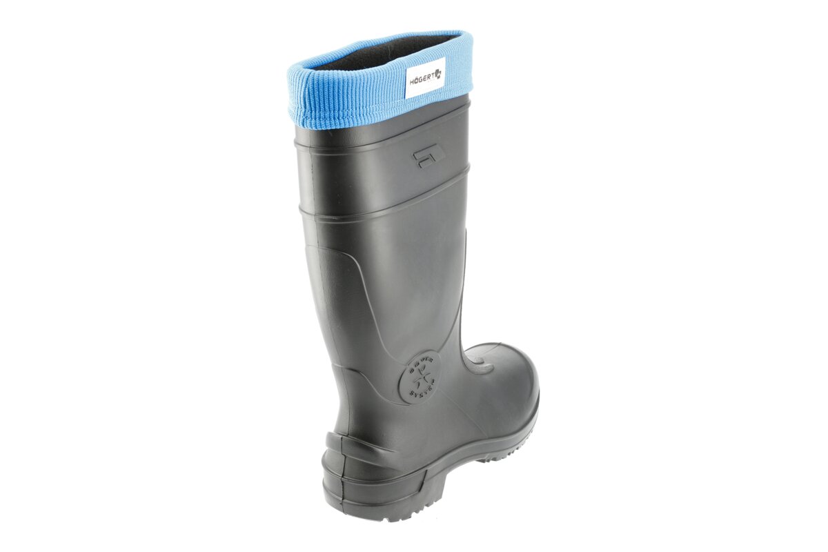 Męskie kalosze ocieplane zgodne z klasą bezpieczeństwa SB według normy ISO 20345:2011. Wykonane z materiału TRC w technologii Light-tech, dzięki której obuwie jest bardzo lekkie i jednocześnie wytrzymałe. Kalosze w kolorze czarnym wyposażone w wyjmowany ocieplacz zakończony wywijanym na cholewkę ściągaczem w kolorze niebieskim. Ocieplacz zapewnia ochronę przed działaniem niskich temperatur nawet do -30°. Buty wyposażono w stalowy podnosek, który chroni palce stopy m.in. przed spadającymi przedmiotami, gruzem, narzędziami. Dzięki antypoślizgowej podeszwie buty doskonale sprawdzą się podczas chodzenia po nierównych i śliskich podłożach. Kalosze polecane są w pracach budowlanych, w przemyśle ciężkim, rolnictwie oraz ogrodnictwie.