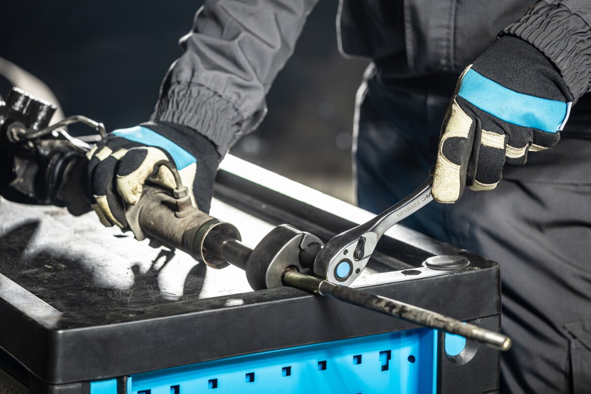 Uniwesalny klucz, umożliwia rozłączenie przegubu wewnętrznego drążka układu kierowniczego.