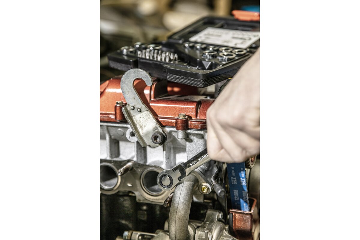 - klucz oczkowy z grzechotką i przegubem w rozmiarze 14 x 19 mm;
