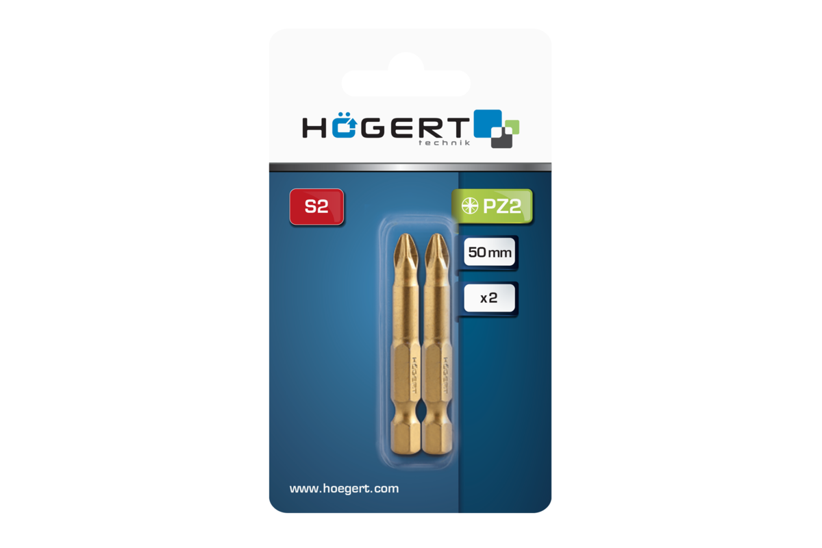 Końcówki wkrętakowe PZ2, 50 mm, stal S2, pokryte azotkiem tytanu, 2 szt