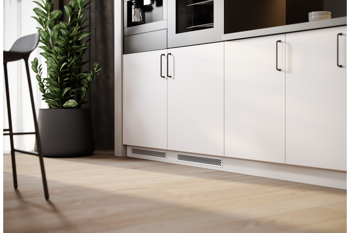 Aluminiowa kratka wentylacyjna dostępna w sześciu uniwersalnych kolorach. Kratka wentylacyjna sprawdza się przy montażu sprzętów w zabudowie w kuchni i łazience m.in. zabudowany piekarnik, lodówka. Kratka wentylacyjna zapewnia odpowiednią cyrkulację powietrza, zapobiega przegrzewaniu się mebli oraz osadzaniu się w ich konstrukcji wilgoci. Kratka wentylacyjna jest odpowiednia do montażu w meblach, nie można jej jednak stosować w ścianach i kanałach wentylacyjnych.