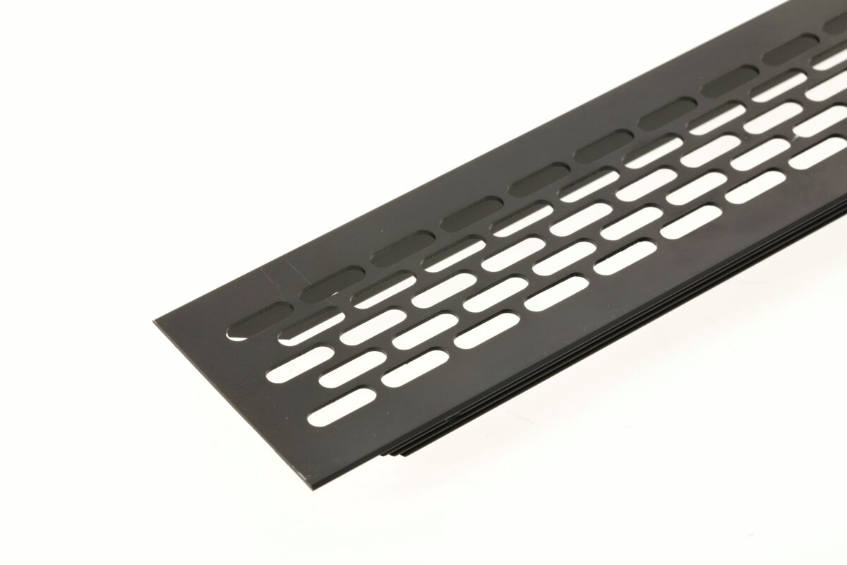 Aluminiowa kratka wentylacyjna dostępna w sześciu uniwersalnych kolorach. Kratka wentylacyjna sprawdza się przy montażu sprzętów w zabudowie w kuchni i łazience m.in. zabudowany piekarnik, lodówka. Kratka wentylacyjna zapewnia odpowiednią cyrkulację powietrza, zapobiega przegrzewaniu się mebli oraz osadzaniu się w ich konstrukcji wilgoci. Kratka wentylacyjna jest odpowiednia do montażu w meblach, nie można jej jednak stosować w ścianach i kanałach wentylacyjnych.