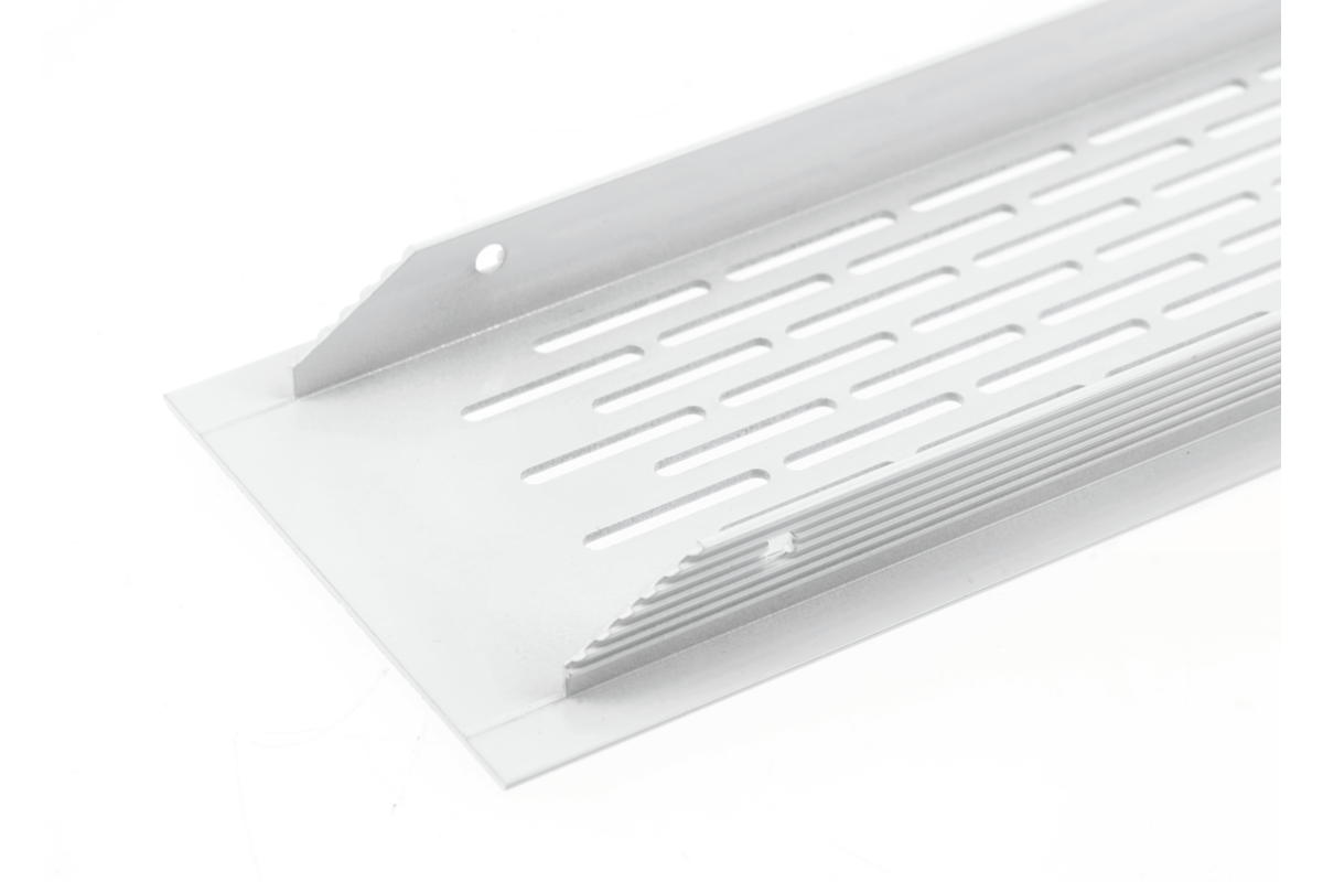Aluminiowa kratka wentylacyjna dostępna w sześciu uniwersalnych kolorach. Kratka wentylacyjna sprawdza się przy montażu sprzętów w zabudowie w kuchni i łazience m.in. zabudowany piekarnik, lodówka. Kratka wentylacyjna zapewnia odpowiednią cyrkulację powietrza, zapobiega przegrzewaniu się mebli oraz osadzaniu się w ich konstrukcji wilgoci. Kratka wentylacyjna jest odpowiednia do montażu w meblach, nie można jej jednak stosować w ścianach i kanałach wentylacyjnych.