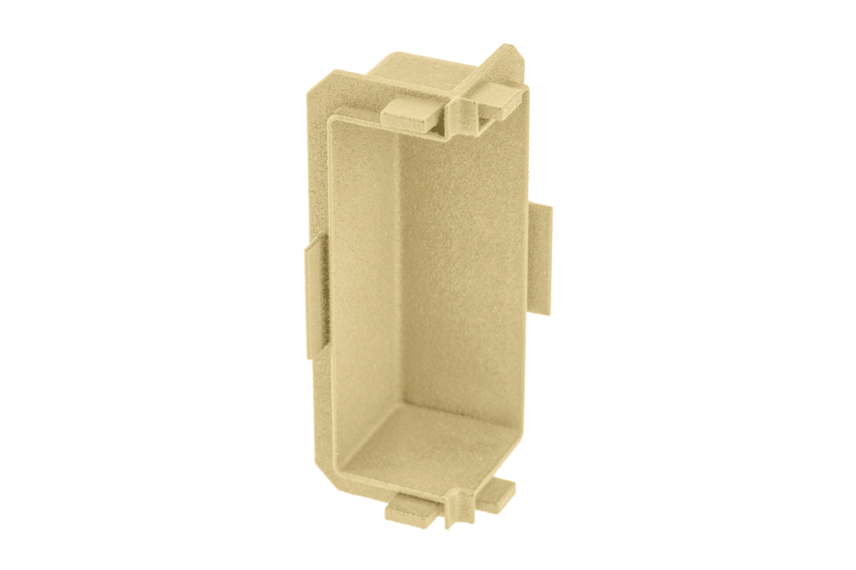 Łącznik wewnętrzny dla profilu С. Przeznaczony do szybkiego połączenia dwóch profili pod wewnętrznym kątem 90°. Łącznik posiada zaczepy, które można łatwo podłączyć do głównych profili. W łączniku znajduje się specjalna kieszeń, w której można ukryć ewentualne wady powstałe po cięciu profili. Łącznik wykonany jest w technologii druku 3D z tworzyw sztucznych, dzięki czemu ich kształt dokładnie odpowiada profilowi. Dostępne kolory: czarny, złoty, biały, inox i aluminium. Łącznik montowany jest na wewnętrznych narożnikach. Na przykład przy tworzeniu kuchni narożnych.
