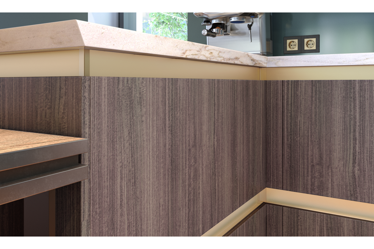 Łącznik zewnętrzny dla profilu С. Przeznaczony do szybkiego połączenia dwóch profili pod zewnętrznym kątem 90°. Łącznik posiada zaczepy, które można łatwo podłączyć do głównych profili. W łączniku znajduje się specjalna kieszeń, w której można ukryć ewentualne wady powstałe po cięciu profili. Łącznik wykonany jest w technologii druku 3D z tworzyw sztucznych, dzięki czemu ich kształt dokładnie odpowiada profilowi. Sprawdzi się doskonale na przykład przy tworzeniu wysp kuchennych. Dostępne kolory: czarny, złoty, biały, inox i aluminium.