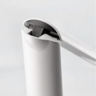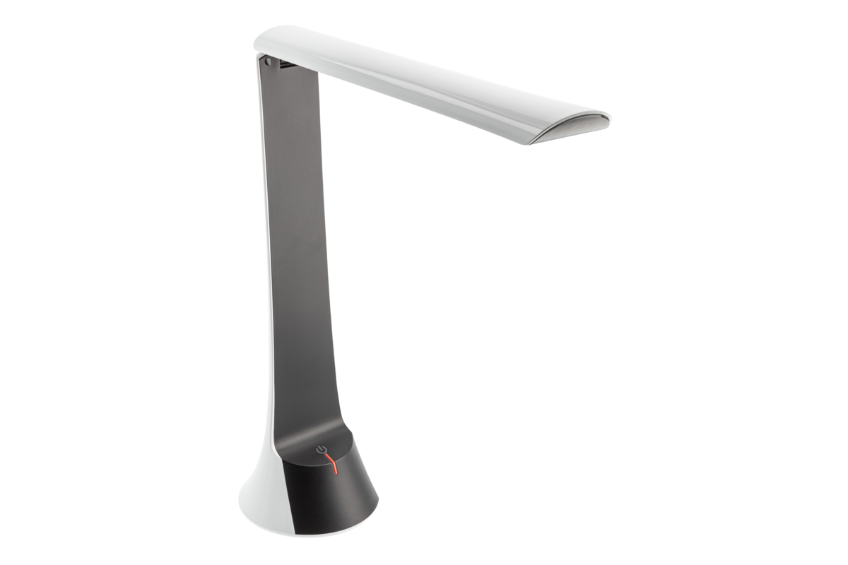 Jak na nowoczesną konstrukcję przystało, lampka nie posiada klasycznego włącznika, tylko dotykowy panel zaznaczony charakterystycznym czerwonym paskiem. Po jego dotknięciu lampka płynnie się rozświetla, aby po chwili osiągnąć swoją pełną moc. Podobnie jest przy jej wyłączaniu, światło delikatnie przygasa aż do całkowitego wyłączenia.