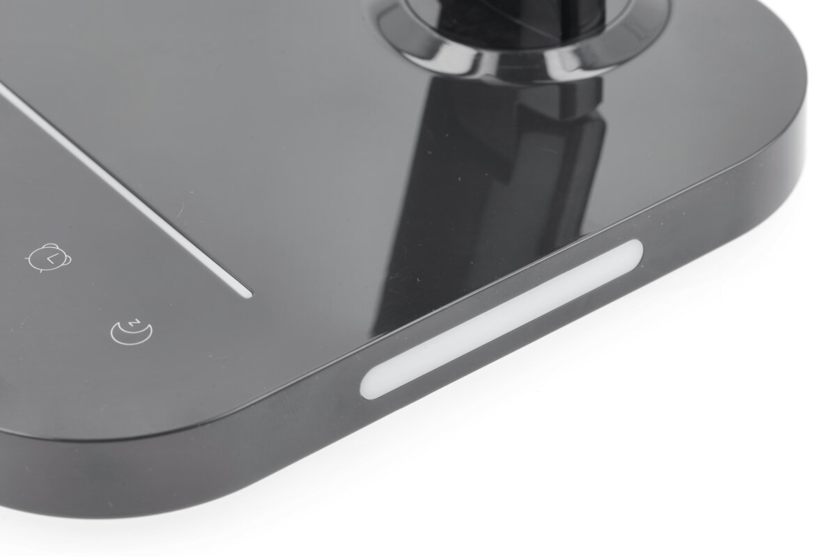 Wiedząc, że w dzisiejszych czasach prawie każdy z nas ma przy sobie co najmniej jedno urządzeni mobilne tj. telefon, tablet czy słuchawki, nie zapomnieliśmy o konieczności ich ładowania, dlatego w podstawie gniazdo USB-A 5 V/1 A.
