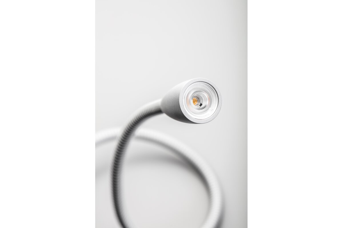 Klasyczna lampka łóżkowa do montowania na wezgłowiu. Lampka zasilana jest napięciem 12 V – zasilacz nie znajduje się w zestawie. 1,5 metrowy przewód zasilający zakończony jest złączką mini AMP, którą można wpiąć bezpośrednio do zasilacza z linii Easy Click.