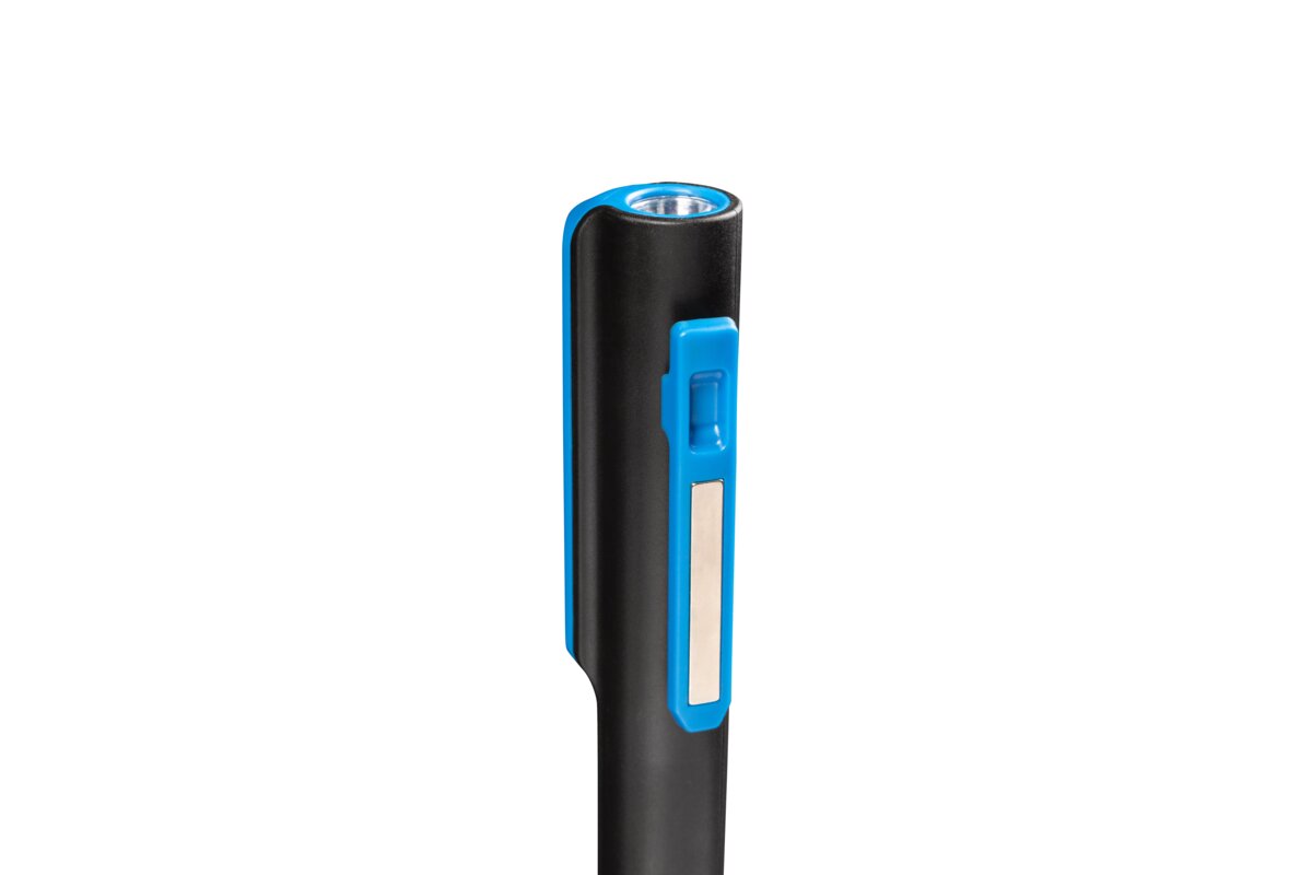 Latarka inspekcyjna z akumulatarem ładowanym przez USB, przydatna w każdym warsztacie, samochodzie czy domu. Posiada magnes i zaczep umożliwiające praktyczne podwieszanie latarki.