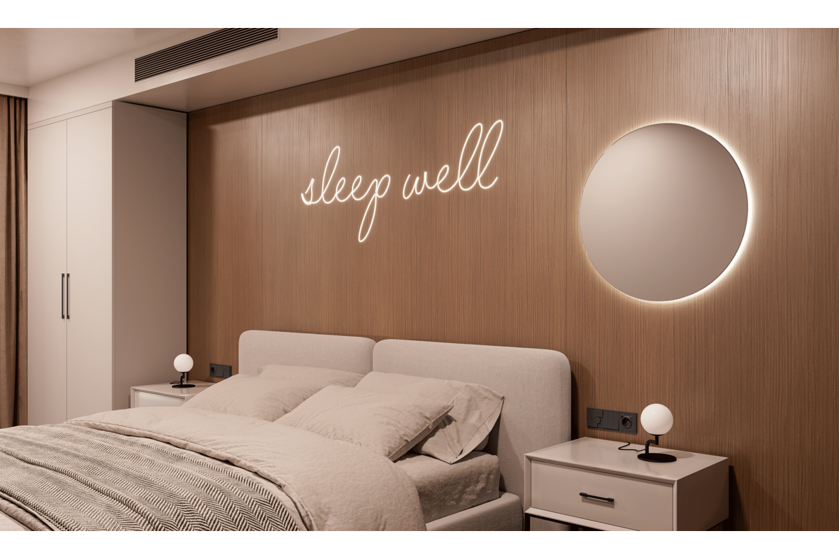 Taśma LED NEON FLEX jest dostępna w 5-metrowej rolce i może być przycinana co 10 mm. Kołnierz, który wystaje ponad powierzchnię płyty, maskuje niedoskonałości frezowania, stanowiąc estetyczne wykończenie aranżacji.