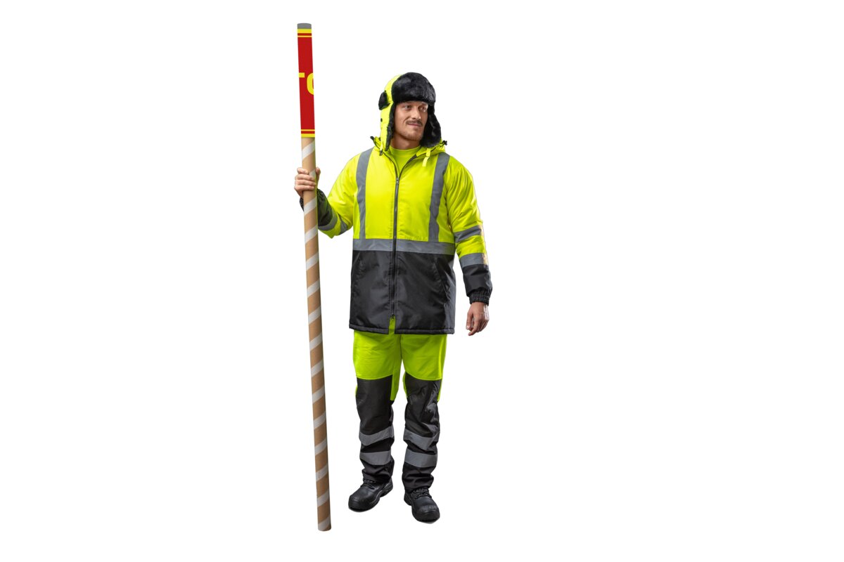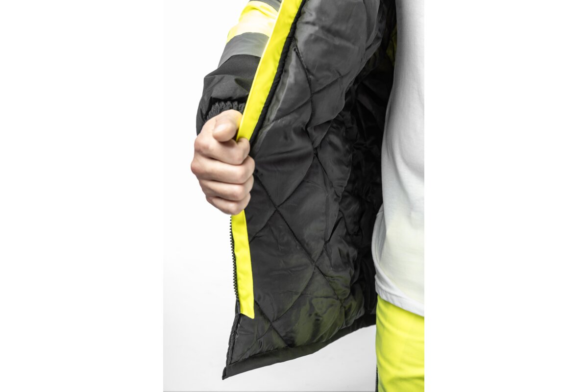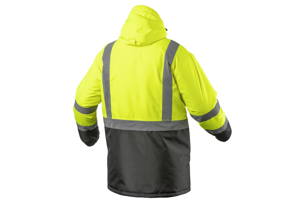 Nowoczesna, ocieplana męska kurtka ostrzegawcza typu parka. Posiada dwie taśmy odblaskowe dookoła barków i rękawów oraz jedną taśmę dookoła tułowia. Starannie wykonana z najwyższej jakości materiałów. Zapewnia maksymalny komfort oraz ochronę przed zimnem i wiatrem. Chroni również przed deszczem (wodoodporność na poziomie 2000 mm H₂O). Zwiększa bezpieczeństwo podczas przebywania w warunkach ograniczonej widoczności np. w trakcie przemieszczania w nocy oraz podczas złych warunków pogodowych np. w czasie deszczu lub mgły. Szczególnie polecana w okresie jesiennym i zimowym.