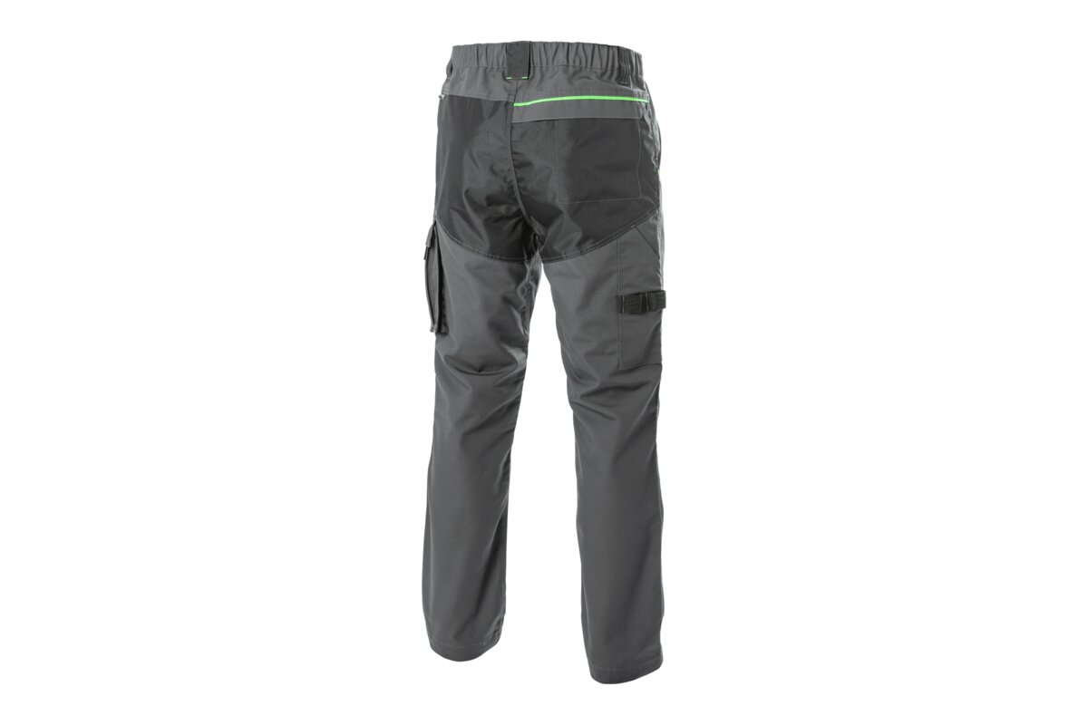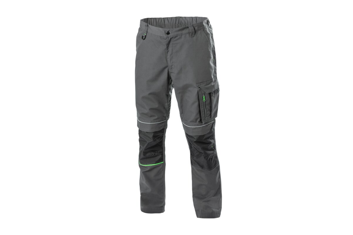 Spodnie o nowoczesnym designie przeznaczone dla pracowników branż technicznych, budowlanych oraz serwisowych. Charakteryzują się wygodą, elastycznością i dużą funkcjonalnością, dzięki zastosowaniu materiału z domieszką poliestru i bawełny. Zastosowanie wzmocnień z materiału OXFORD 300D na kolanach oraz wzmocnionych szwów zapewnia wytrzymałość i odporność na uszkodzenia mechaniczne, co sprawia, że są to spodnie idealne do intensywnej pracy.