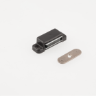 Magnes meblowy do szafek. Obudowa wykonana jest z tworzywa. W komplecie znajduje się również blaszka przytrzymująca magnes po zamknięciu frontu.