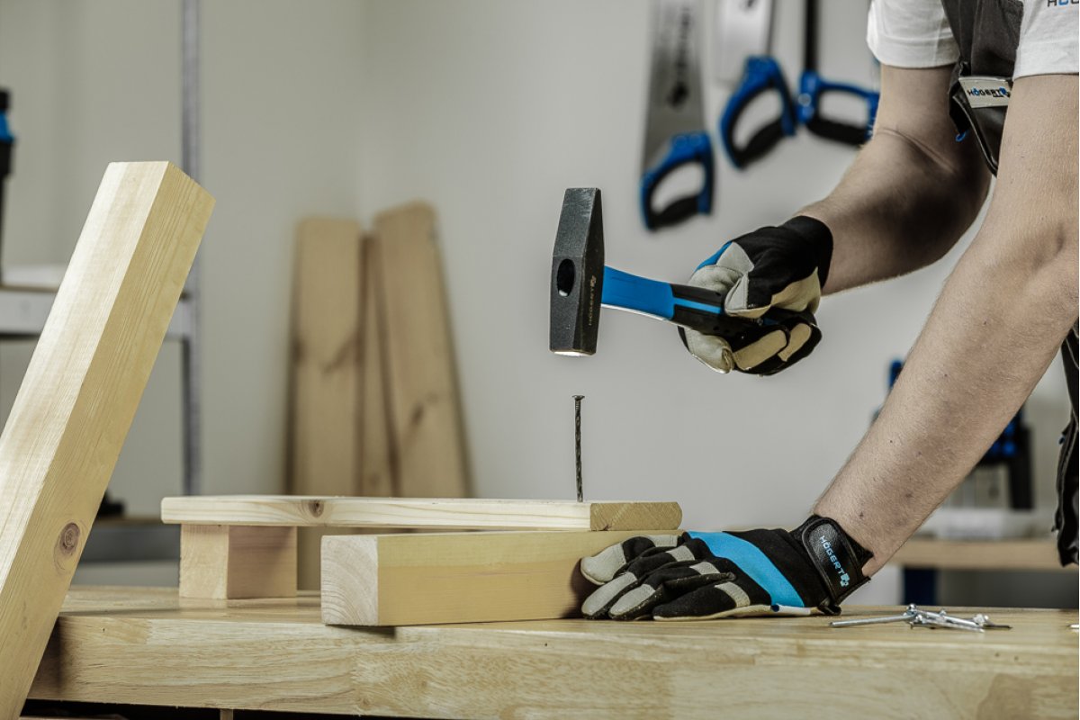 Młotek ślusarki z rękojeścią z włókna szklanego do wykonywania prac remontowo-budowlanych.