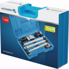 Siedmioczęściowy zestaw blacharski w skład, którego wchodzą młotki o charakterystycznych płaszczyznach i kowadełka o różnych kształtach, łukowe i wypukłe. Praktyczny i skuteczny w działaniu zestaw do kształtowania blach. Do obróbki blach stalowych oraz blach z metali nieżelaznych.