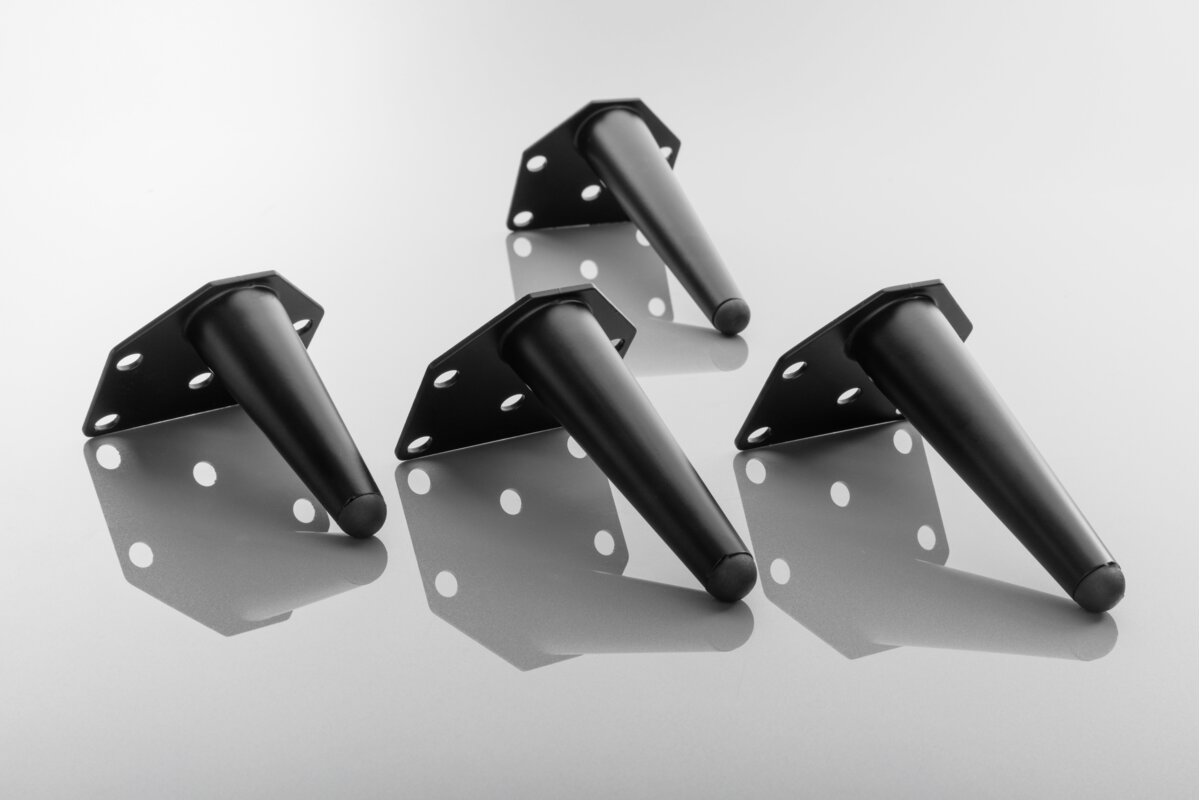 Klasyczna nóżka w nowoczesnej odsłonie – wyróżnia się charakterystycznym skośnym kształtem, dzięki czemu dodaje meblom stylu i charakteru. Nóżka ma kształt cylindryczny i zwęża się ku dołowi. Wykonana z wysokiej jakości stali, co gwarantuje jej trwałość i funkcjonalność. Nóżka Anchor została pokryta lakierem, co zapewnia jej elegancki wygląd i dodatkową ochronę. Atutem jest wykończenie nóżki w modnym, uniwersalnym czarnym macie, który idealnie wpasuje się w wiele aranżacji wnętrz. Oferowana nóżka ma wysokość 100 mm.
