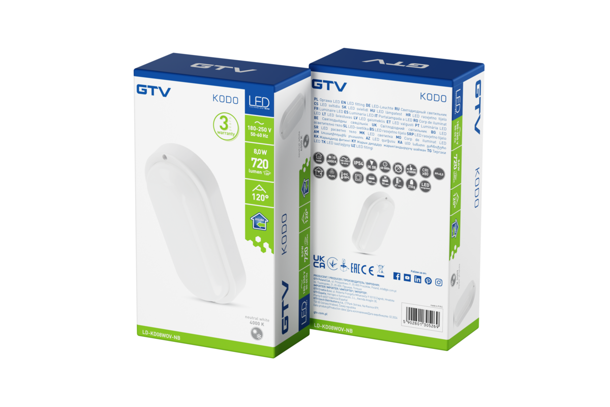 Oprawa emituje neutralne białe światło o temperaturze barwowej 4000K, co jest korzystne w wielu sytuacjach oświetleniowych. Jej owalny kształt i biały kolor nadają się doskonale do współczesnych wnętrz, zapewniając zarówno funkcjonalność, jak i estetykę. Dzięki swojej wydajności, trwałości oraz odpowiednim parametrom ochronnym, oprawa LED KODO-OV stanowi doskonałe rozwiązanie do oświetlenia przestrzeni w sposób efektywny i atrakcyjny wizualnie.