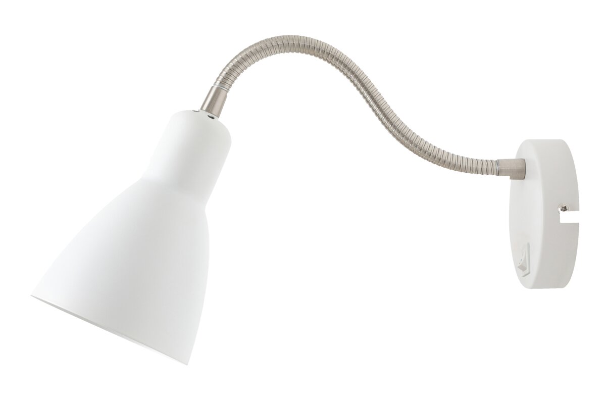 Charakterystycznym elementem kinkietu ETORE jest klosz na metalowym wysięgniku, dzięki któremu lampkę można ustawić w dowolnym położeniu. Oprawa posiada włącznik na elemencie mocującym.
